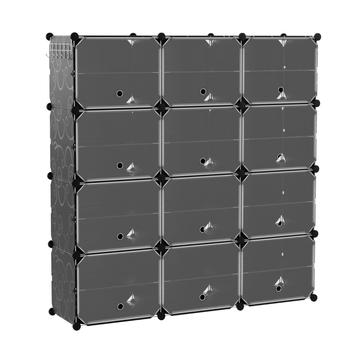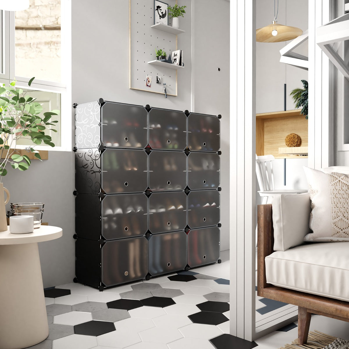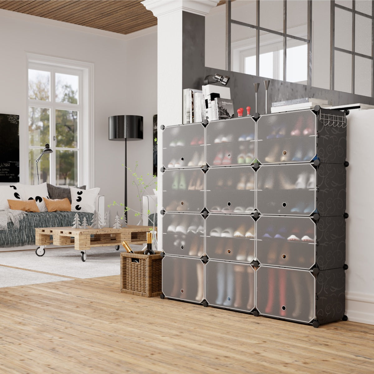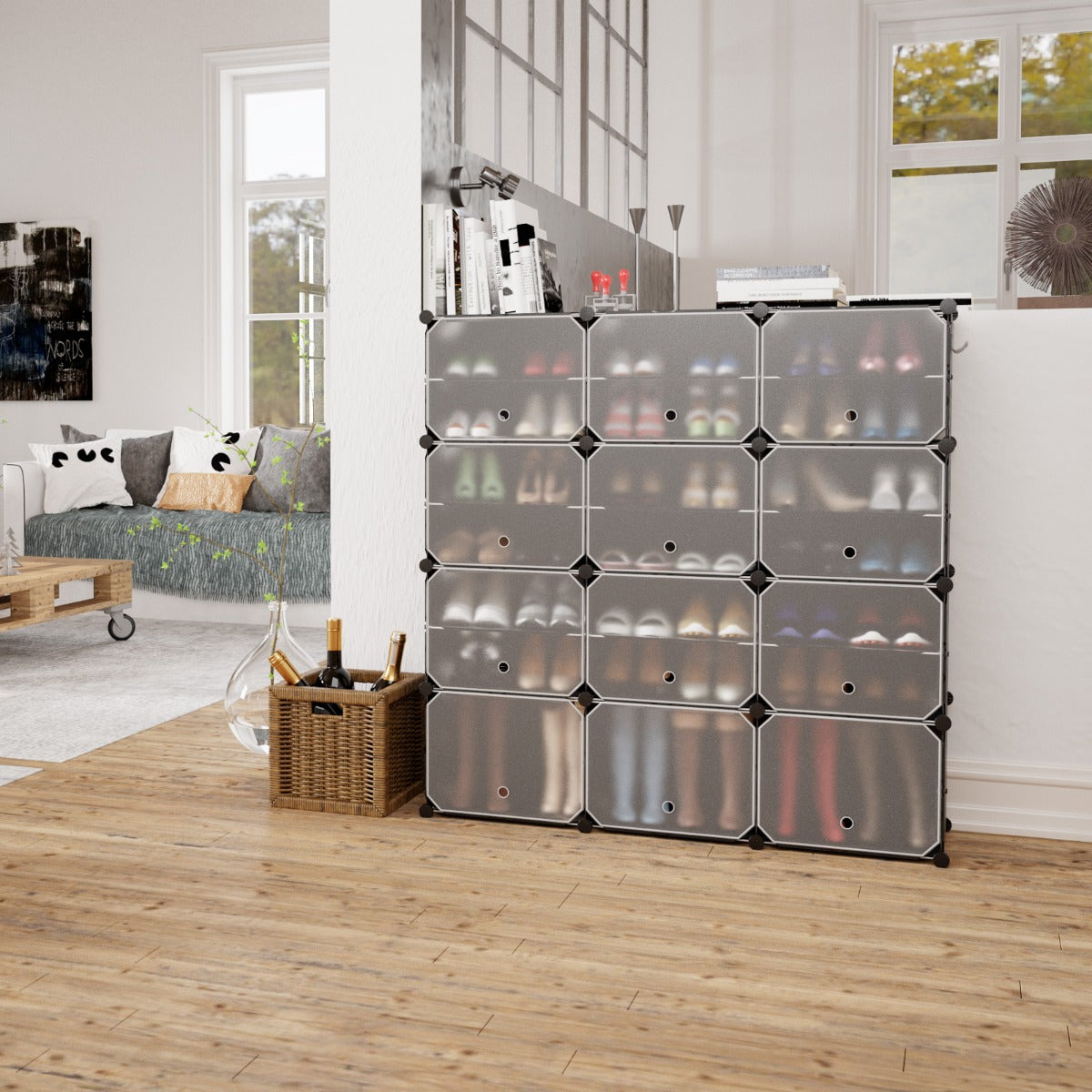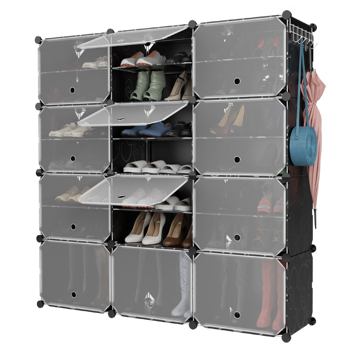 NNECW 12-Cube Shoe Storage Cabinet with Removable Shelf for Hallway-Black