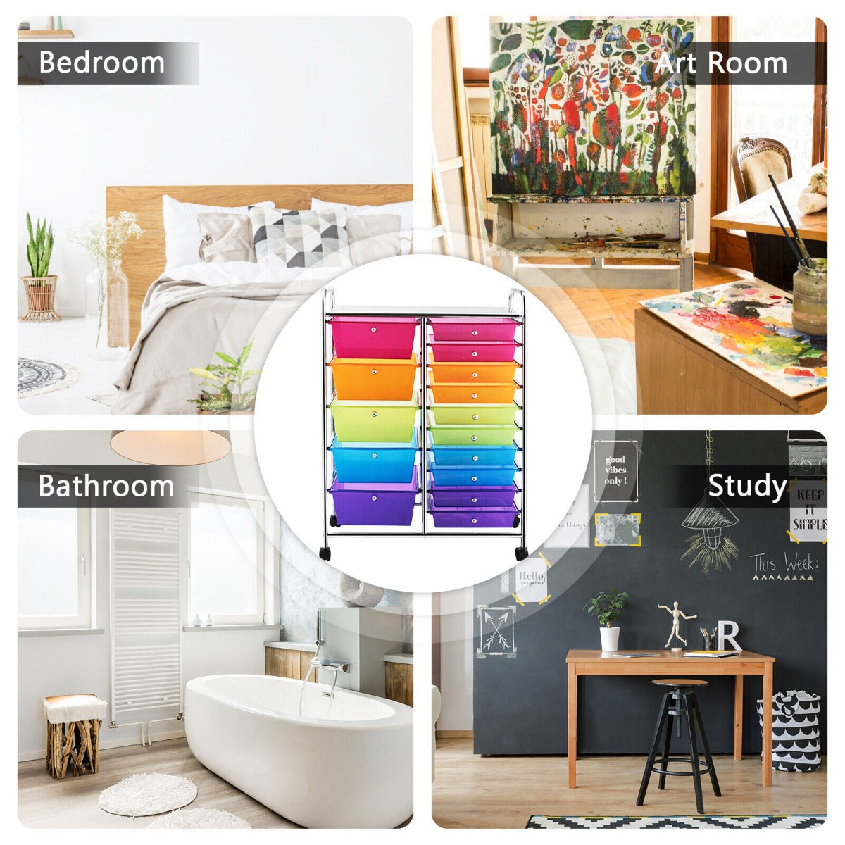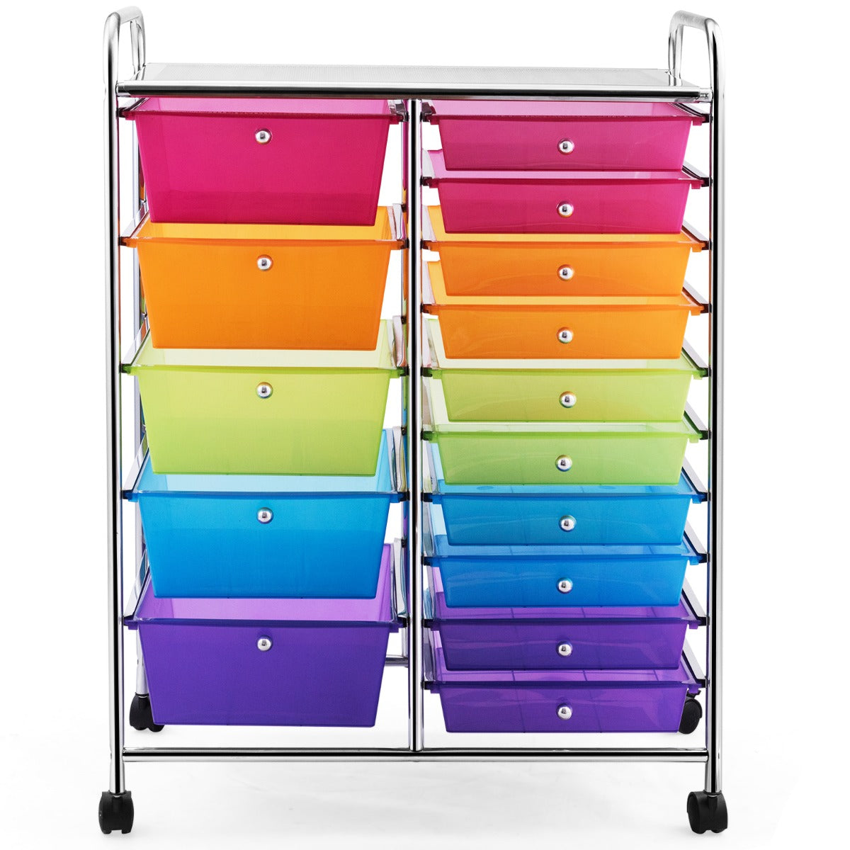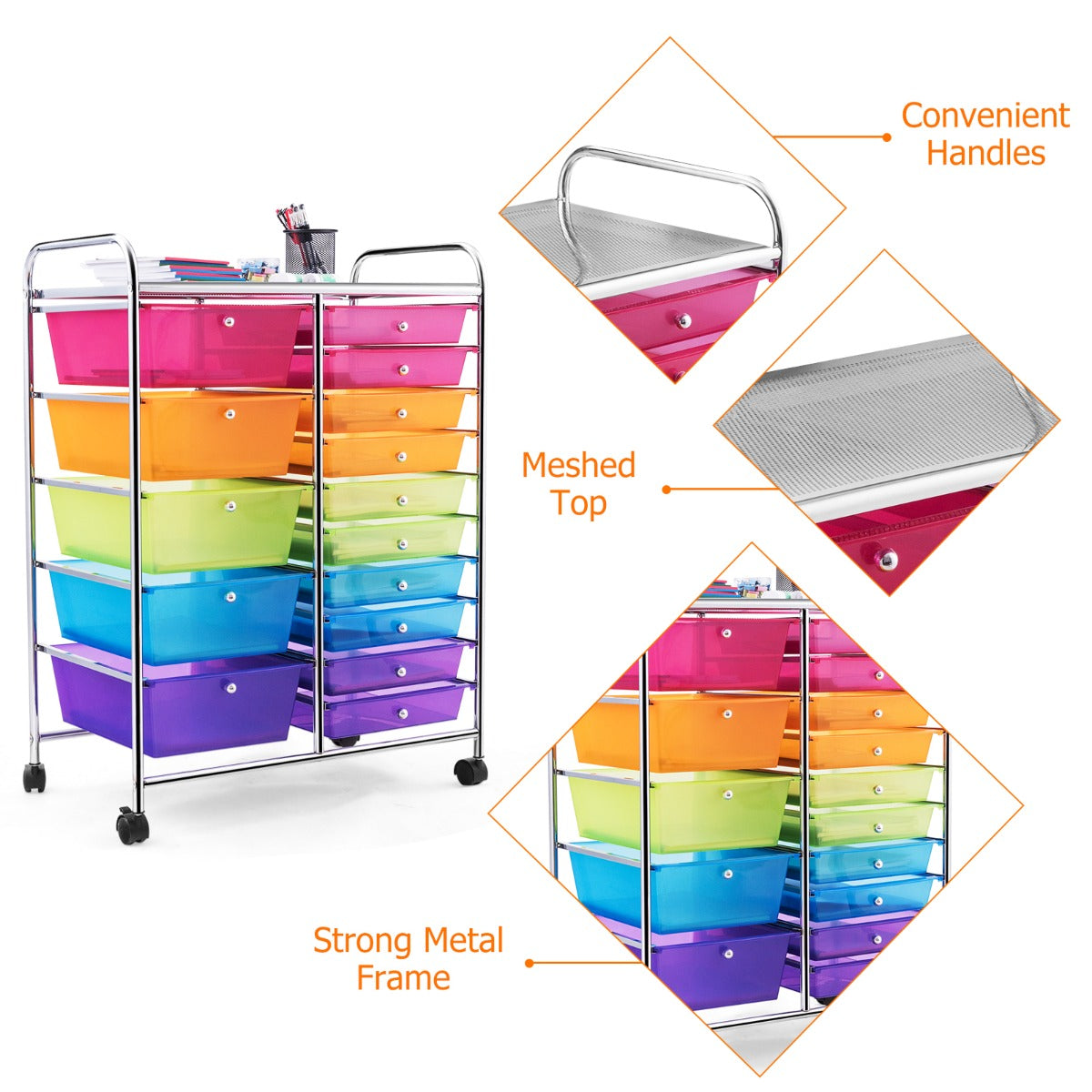 NNECW 15 Drawer Rolling Storage Cart with Wheels for Home Office Multi-color