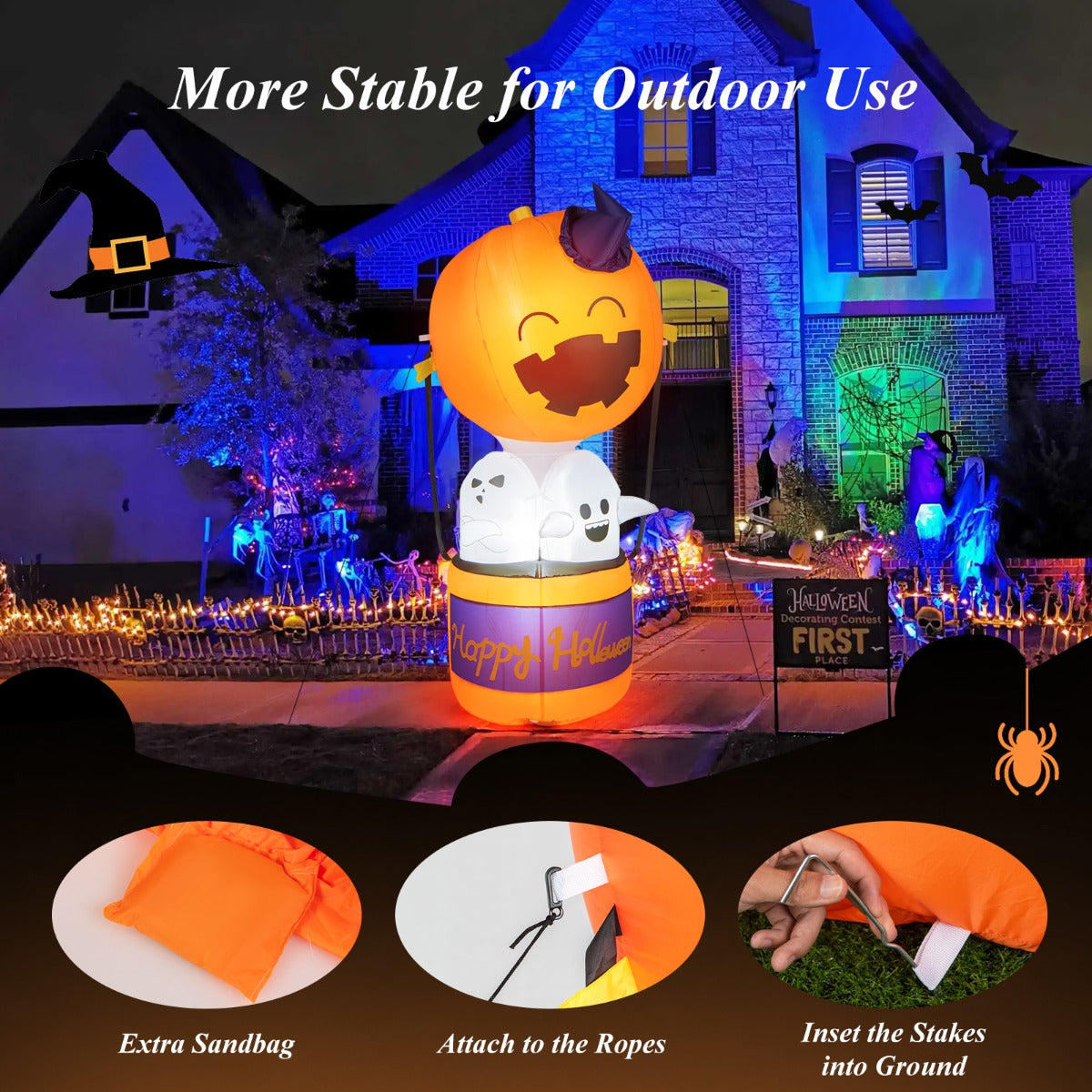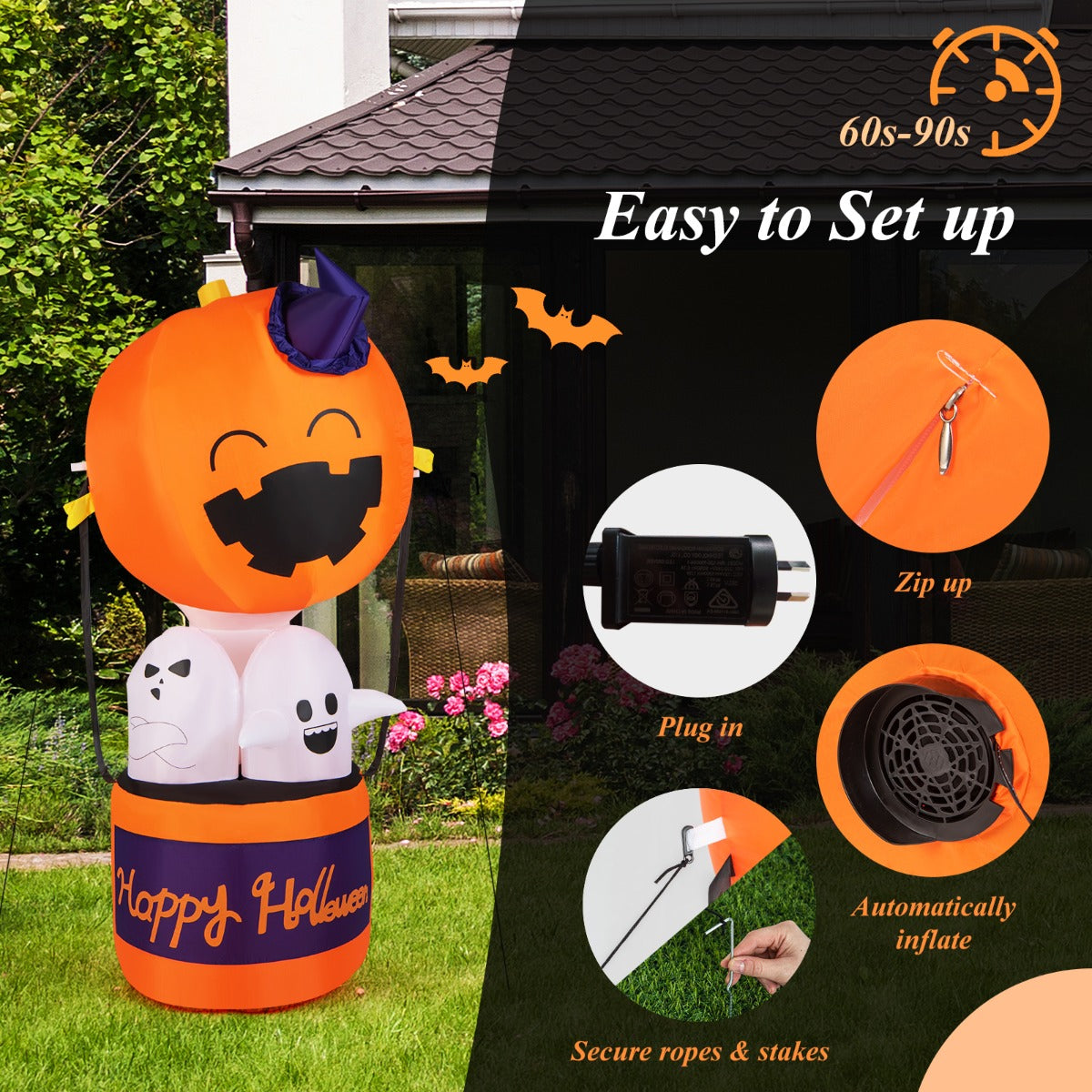 NNECW 180CM Halloween Inflatable Pumpkin Hot Air Balloon with Ghosts