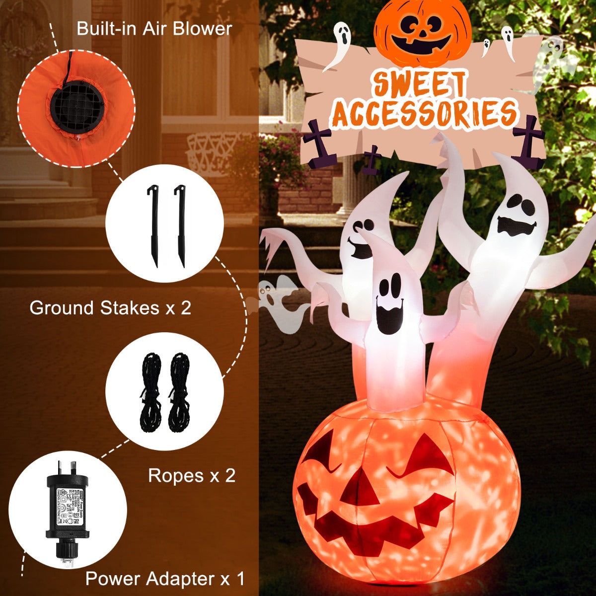 NNECW 182CM Halloween Blow Up Pumpkin and Ghost Combo with Built-in LED & Blower