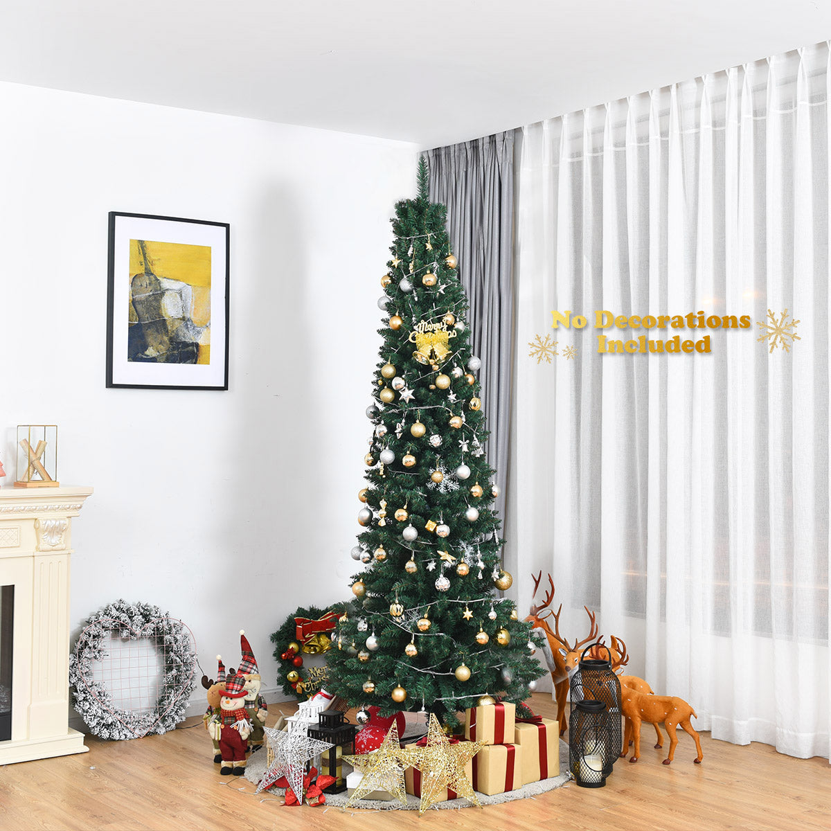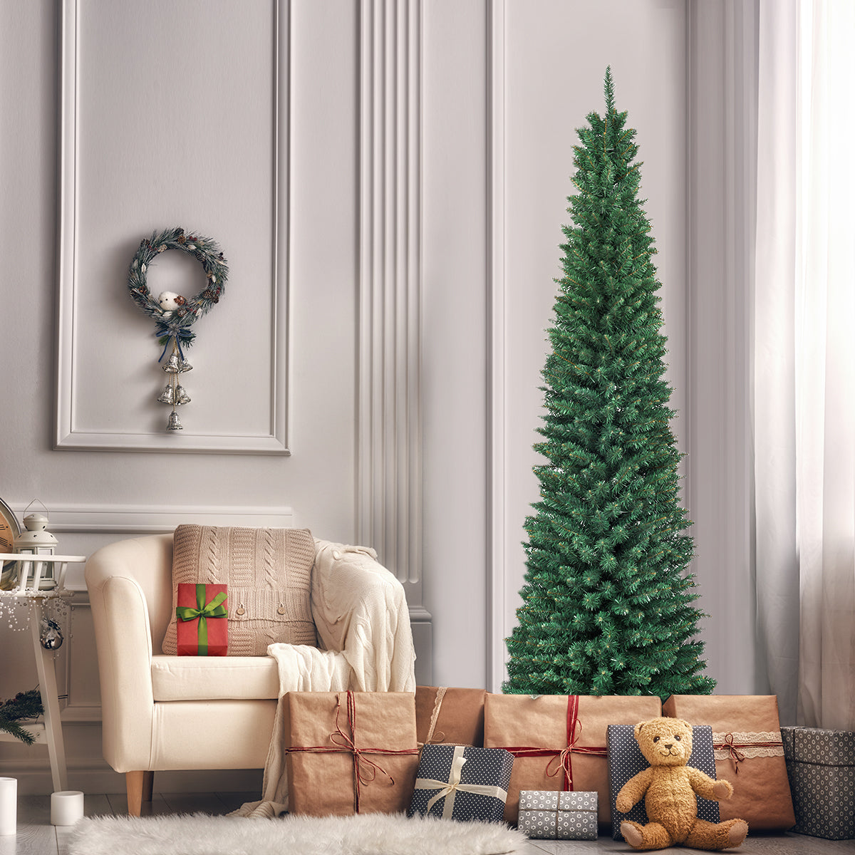 NNECW 2.1M Slim Pencil Christmas Tree with Branch Tips for Indoor Decoration