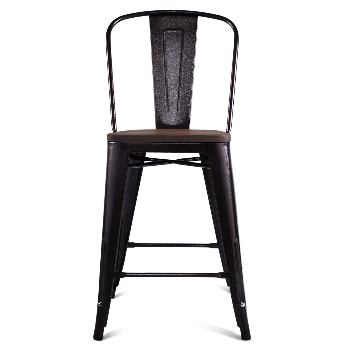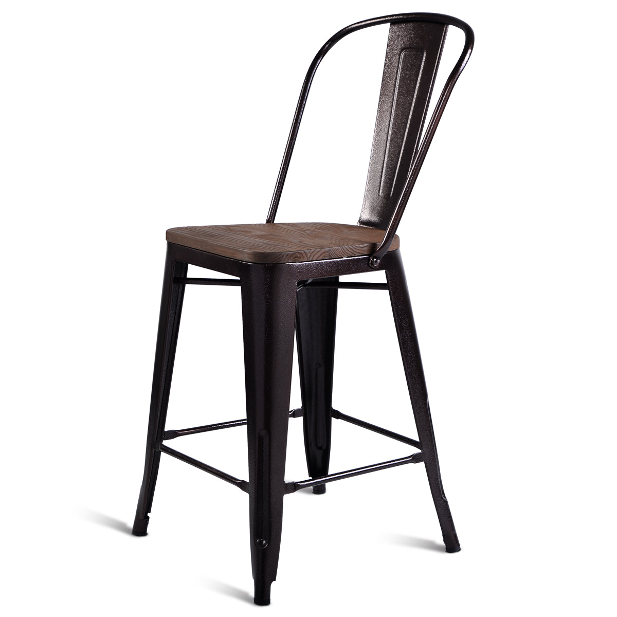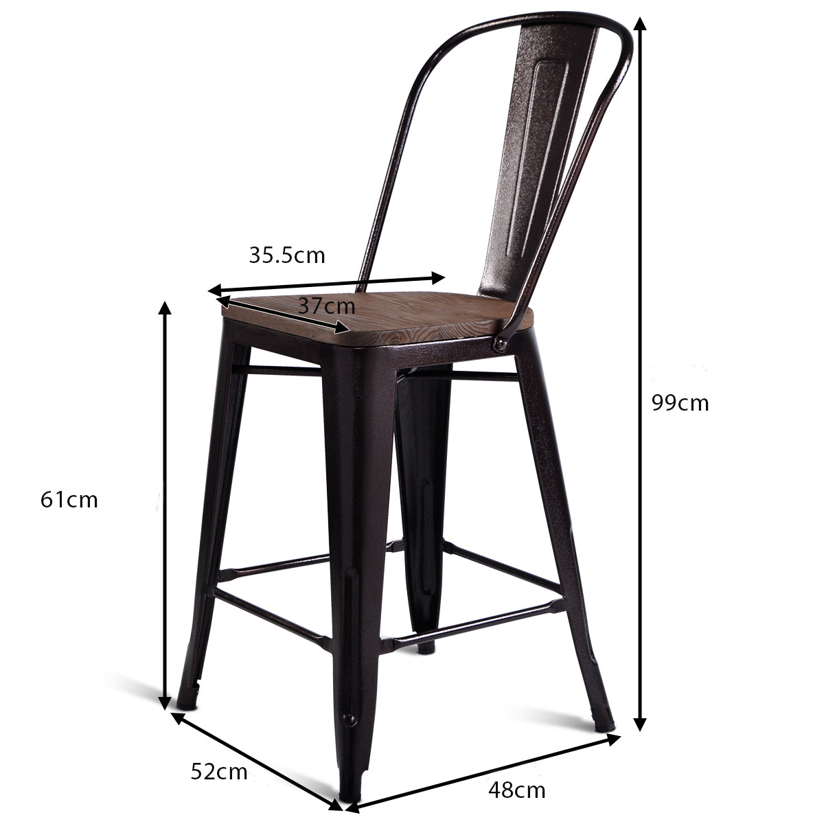 Ergonomic Design: This stylish metal stool features a curved backrest with vertical slats for added comfort. The backrest can also be removed if necessary. The lower support brace serves as a footrest on all sides. The thickened wooden panel is still comfortable even after prolonged sitting.