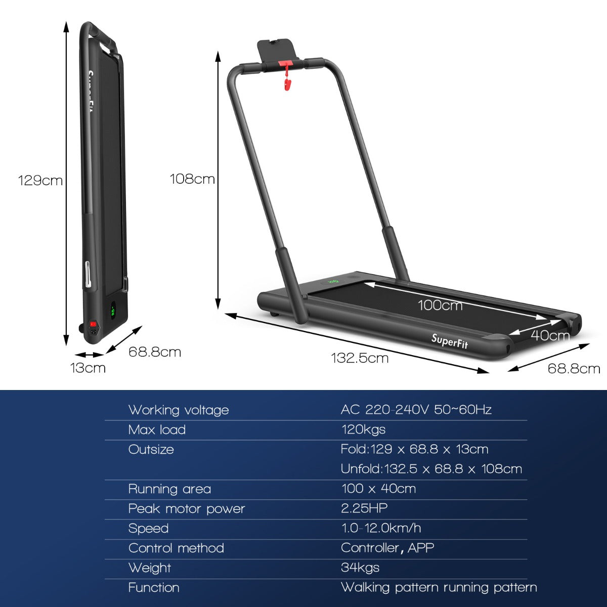 Multipurpose Home Treadmill: Focusing on providing high-quality and healthy life, this 2 in 1 folding treadmill combinesrunning and walking functions. When you are in walking mode, the speed is 1 - 4km/hwhile the speed changes to 1 - 12km/hif you choose to run.