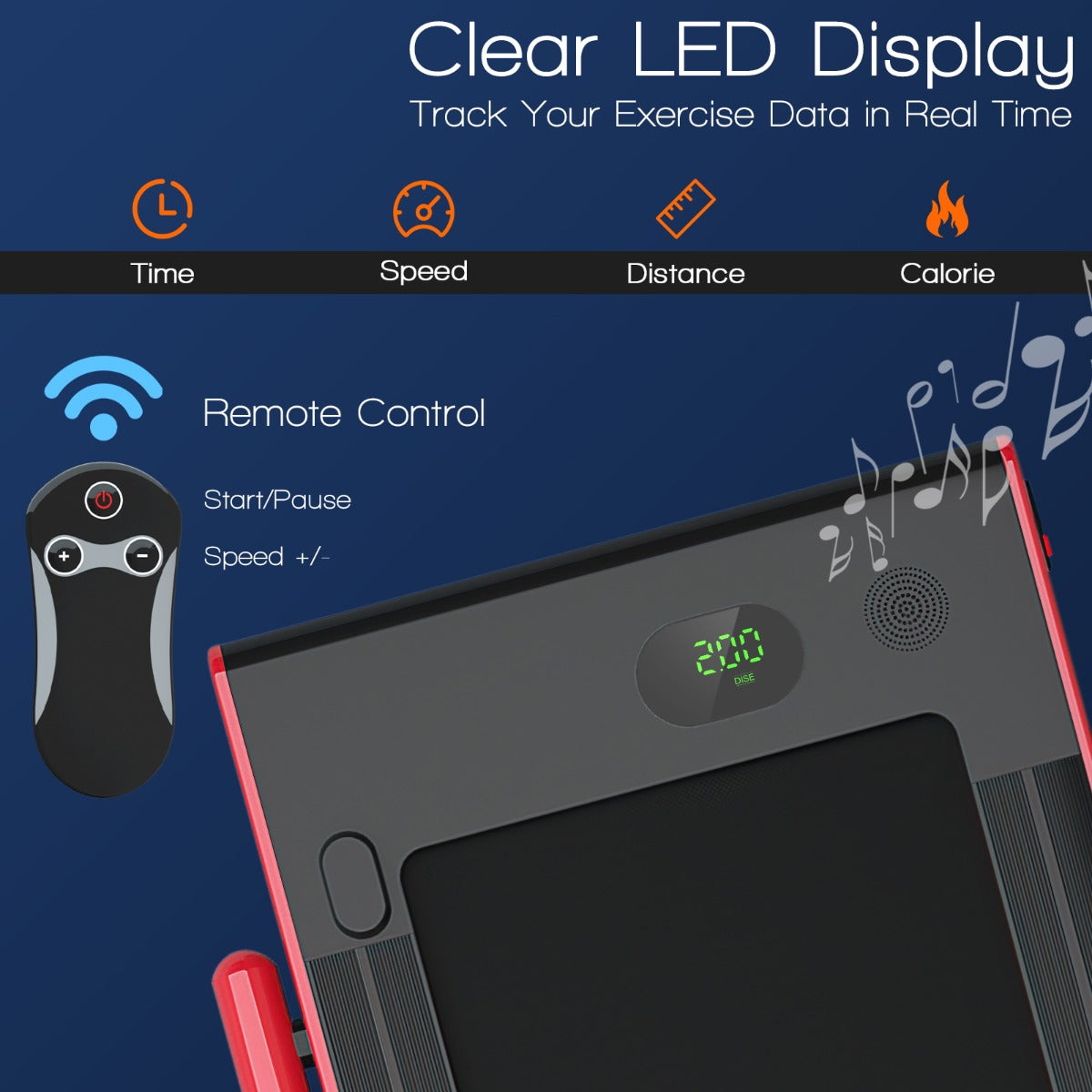 Track your time, speed, distance and calorie data through clear LED display