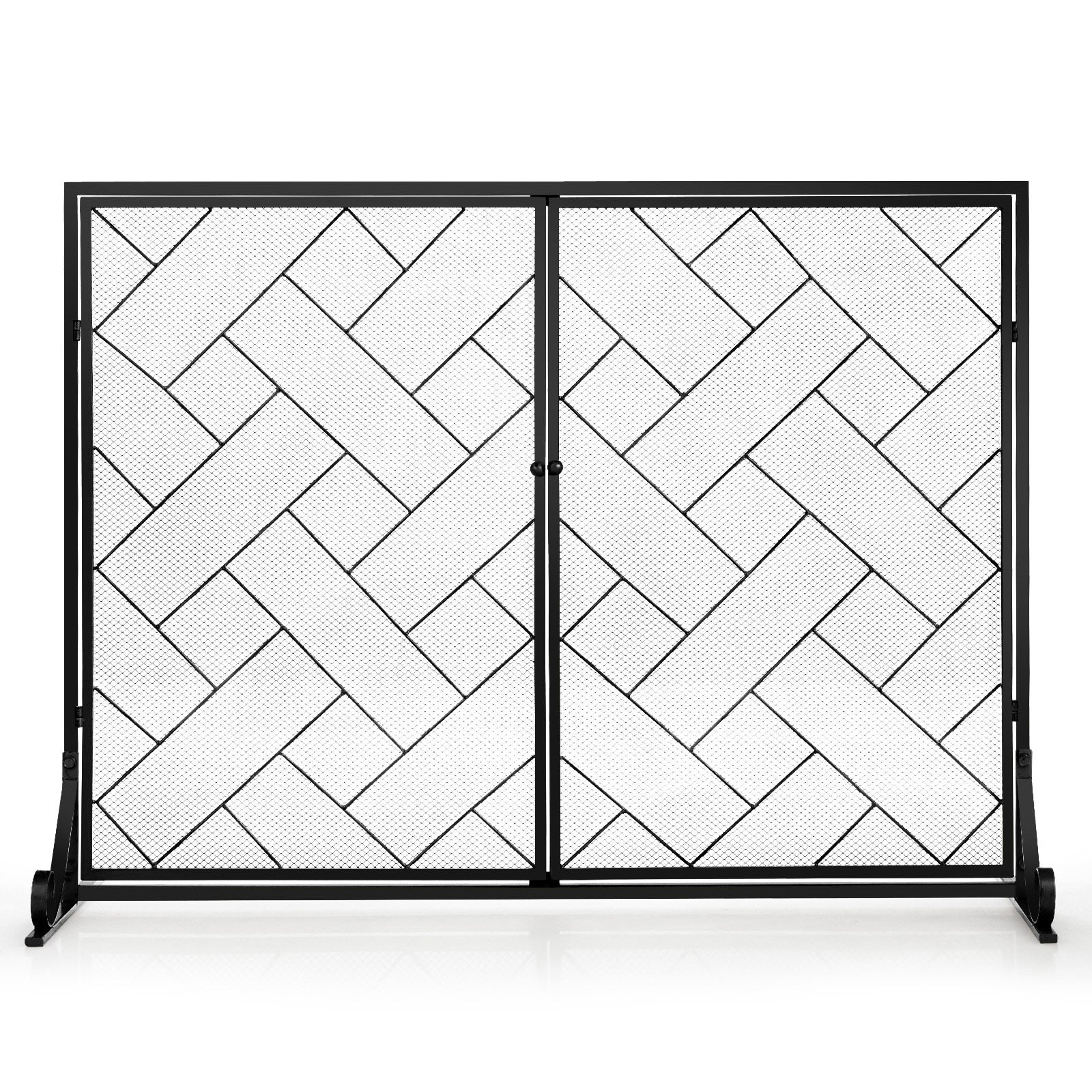 NNECW 2-Panel Fireplace Screen with Double Door-Black