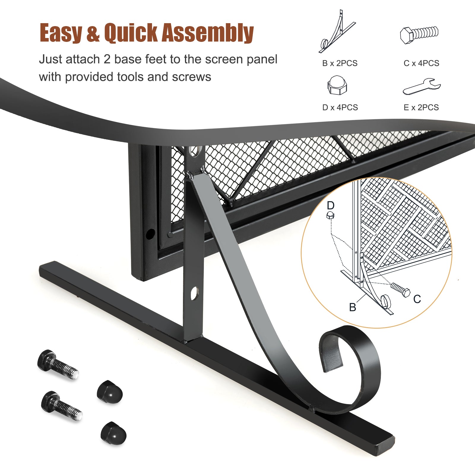 Quick & Easy Assembly: Coming with 2 door panels, 2 vertical base feet, complete screws and detailed instructions, this fireplace screen is easy to put together. What you need to do is just attach base feet to the screen panels. Moreover, with a light net weight of 7.5kg, this wrought iron fire spark guard gate is easy for you to move.