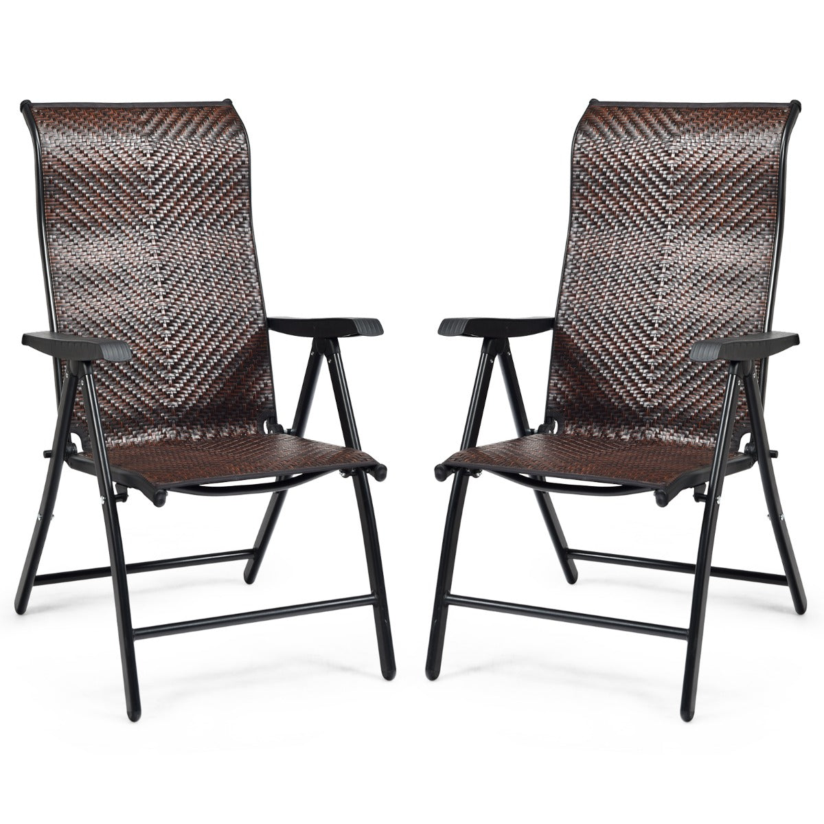 NNECW 2 Piece Outdoor Patio Rattan Folding Chair with Adjustable High Backrest for Garden Balcony