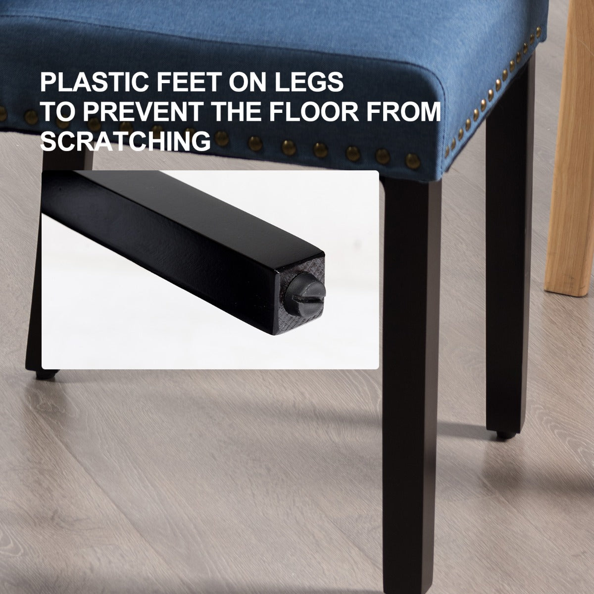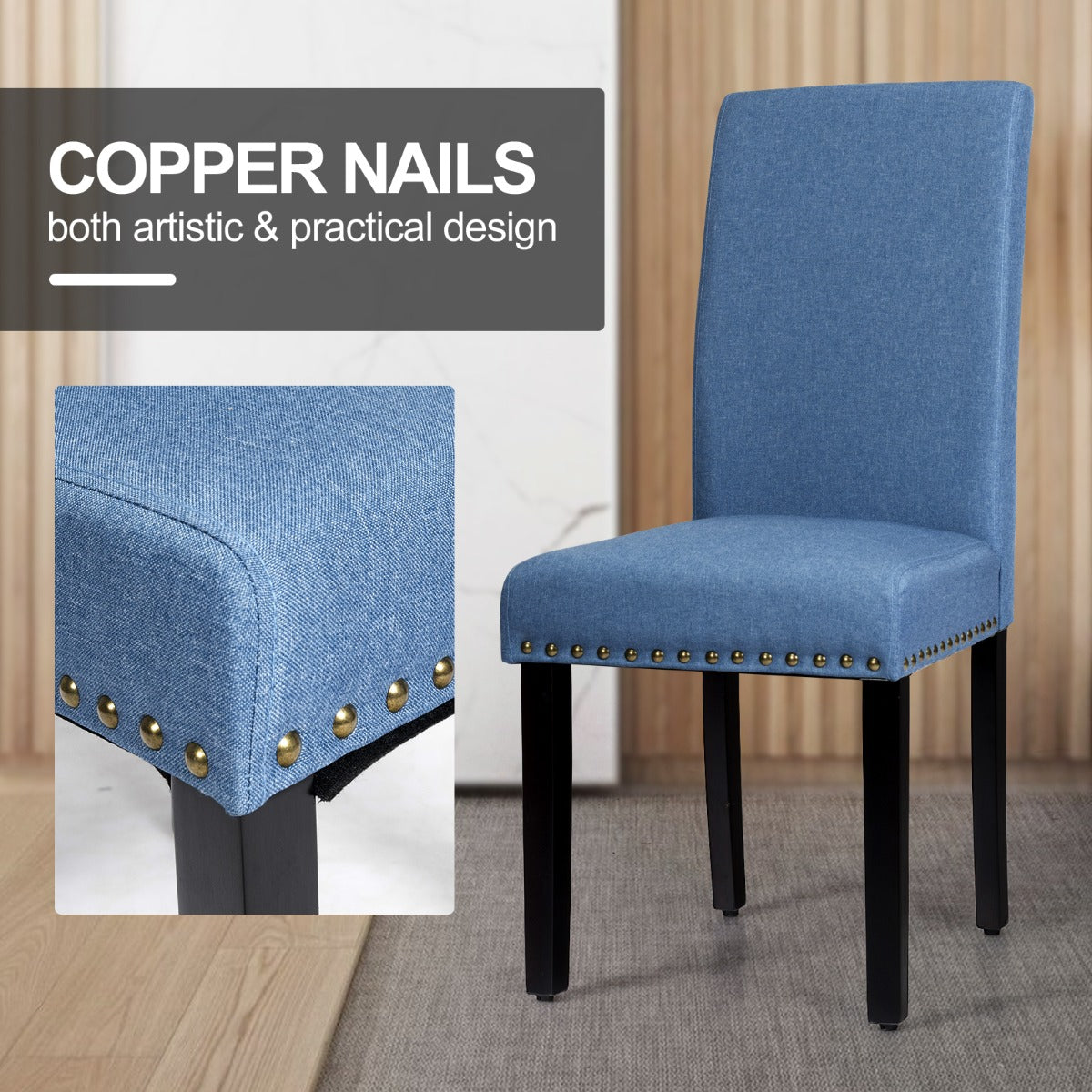 NNECW 2 Pieces Fabric Dining Chairs with Upholstered Seat & Nailhead Trim-Blue