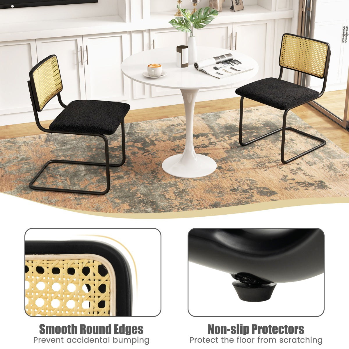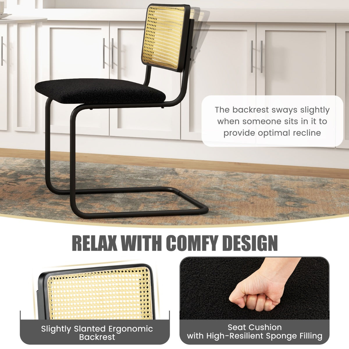 NNECW 2 Pieces Mid-Century Modern Dining Chair with Cane Back & Cantilever Design