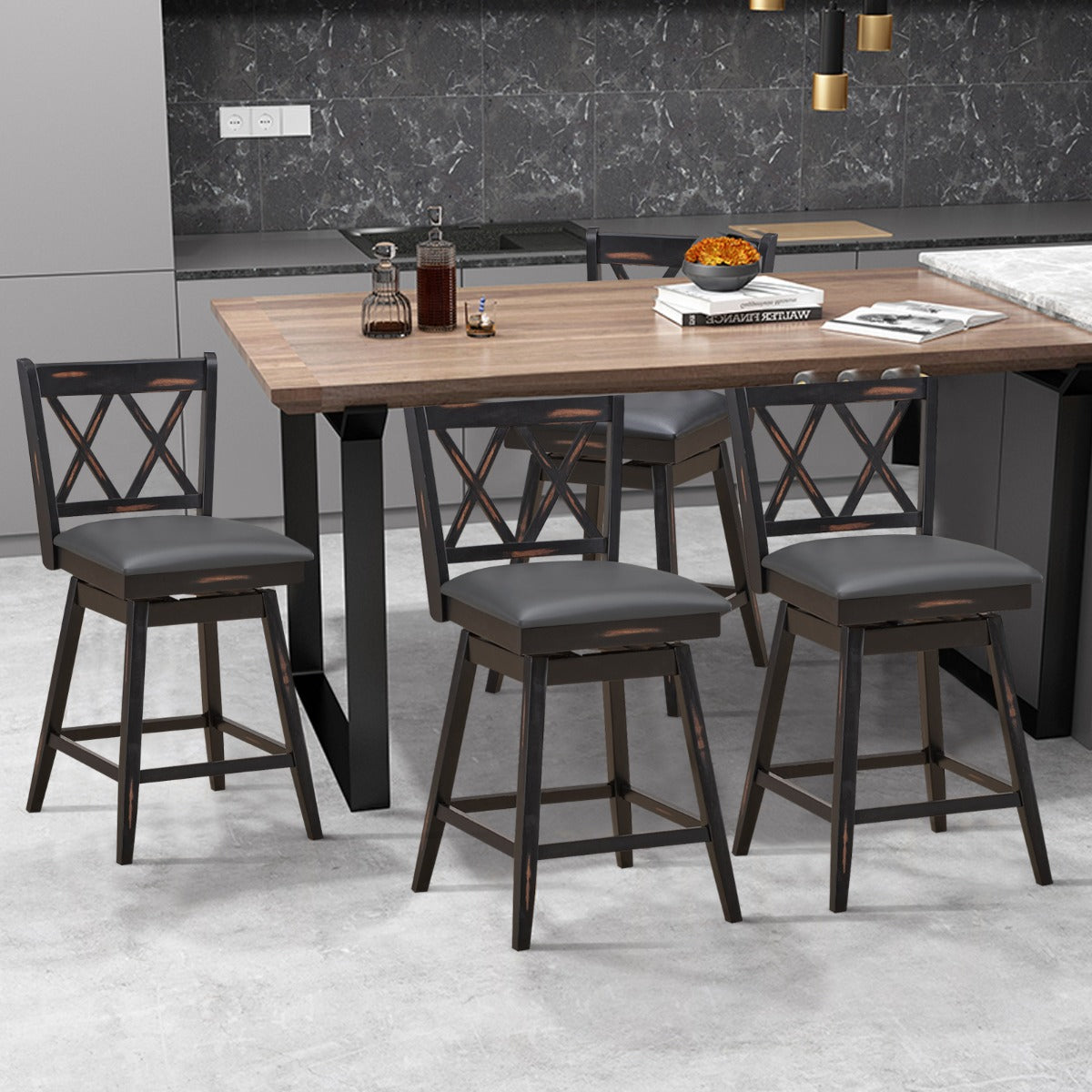 Transform your house or business place with simple elegance and contemporary bar stool. Constructed of a solid rubber wood frame, these bar stools are strong enough to support 120kg without wobbling. And the PVC leather cushion is filled with a soft sponge to offer you comfortable and cozy seating. What's more, it can rotate 360°to bring a wider range of motion. With the waterproof PVC surface, the seat is easy to clean. In addition, this stool has a simple structure, allowing you to install it within a few minutes. The delicate finish and sophisticated appearance make this barstool ideal for various occasions, including living room, office, coffee shop, pub and more.