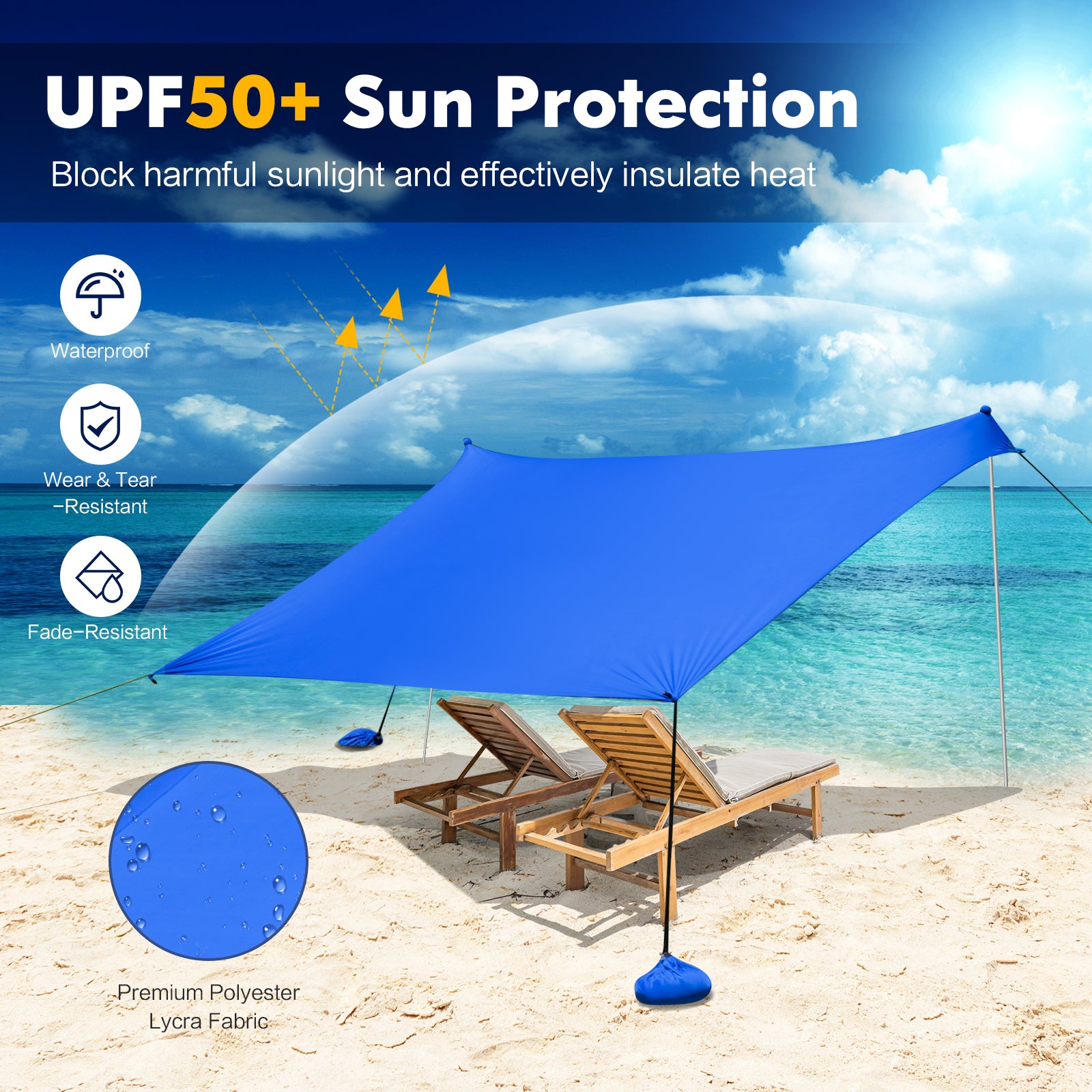 NNECW 2-Size Beach Sunshade Canopy with Sandbags & Carry Bag for Beach Trip-Blue-300 x 280 x 200 cm