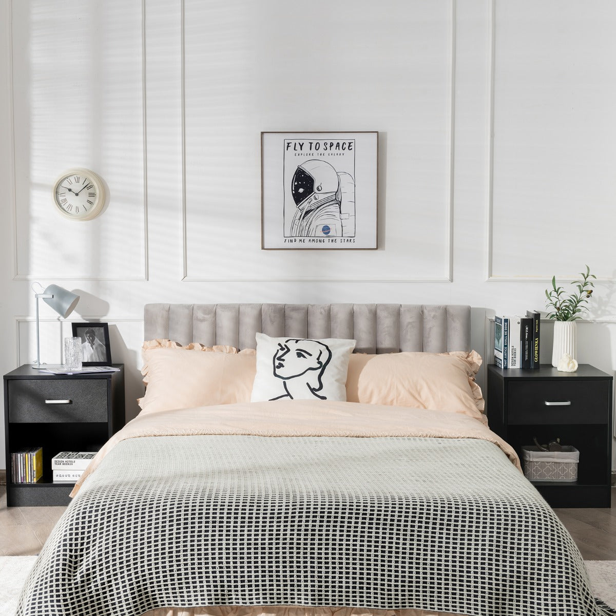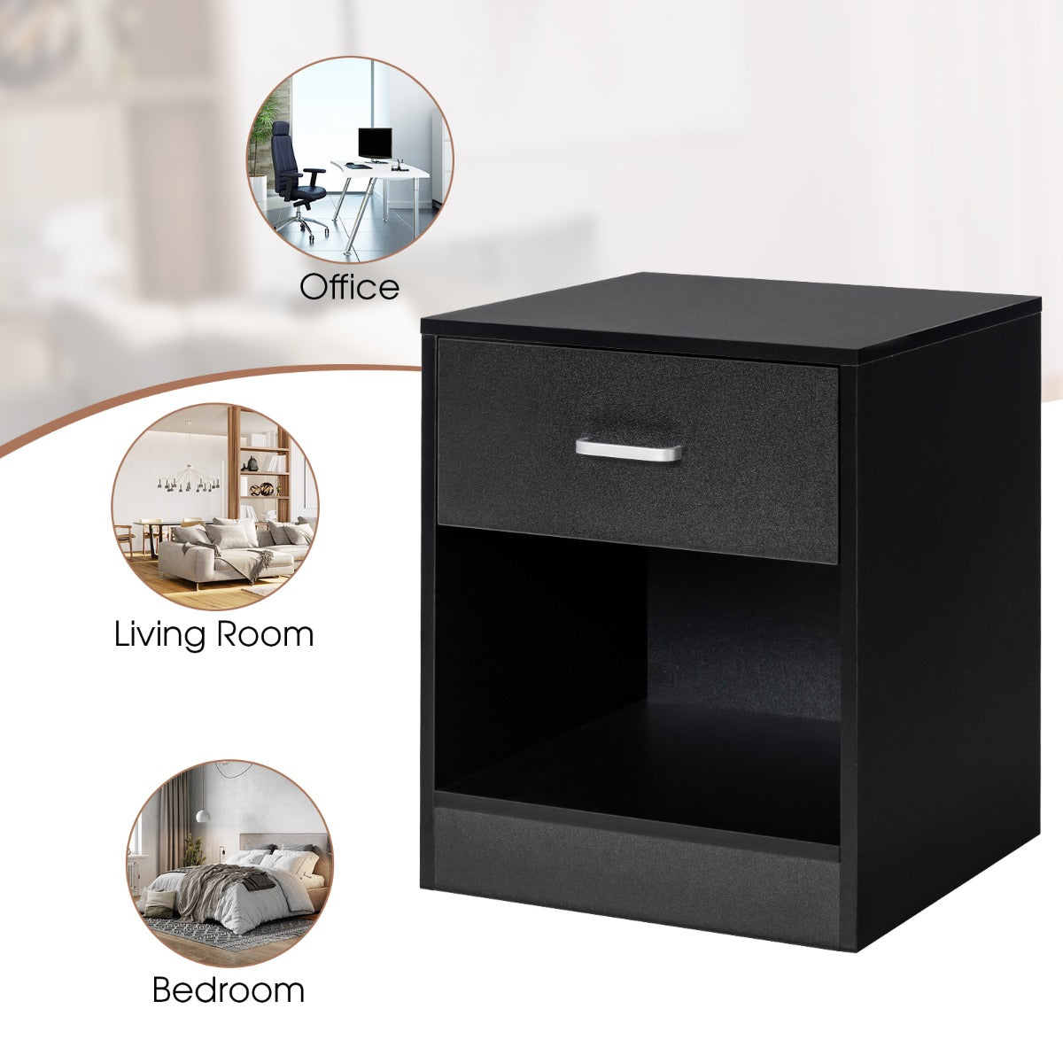 NNECW 2-tier Wooden Bedside Table with Storage Drawer and Cabinet for Bedroom/Living Room/Office-Black-2 pieces