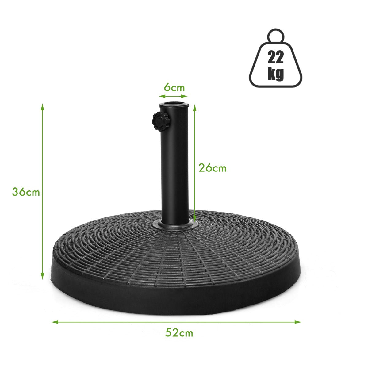 Attractive Look & High Applicability: This patio umbrella base is designed with rattan pattern on the surface, offering you a more comfortable using experience. And it is suitable to be used in many places with a patio umbrella, such as balcony, backyard, poolside, market entrance and so on.