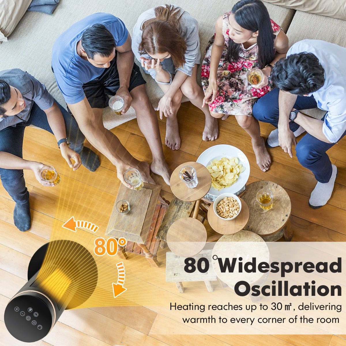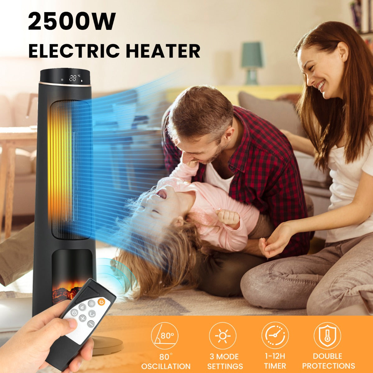3 Modes & 80° Oscillation: This tower space heater is suitable for both summer and winter because it boasts 2500W high heating, 1400W low heating and a cooling fan. No matter which mode you choose, the 80° wide oscillation will deliver a cozy breeze throughout the room. And the 12H timer and low noise operation take the comfort to the next level.