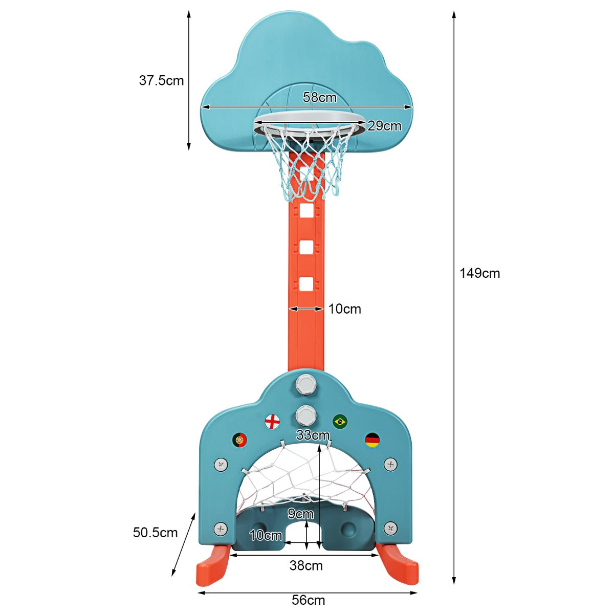 3-in-1 Activity Center: This kids basketball hoop has three sports to play, including golf game, basketball game and soccer goal game. It also comes with 1 basketball,1 soccer ball,2 golf balls and 1 golf club. By playing by themselves or with friends, children can gain unlimited joy and develop motor skills!
