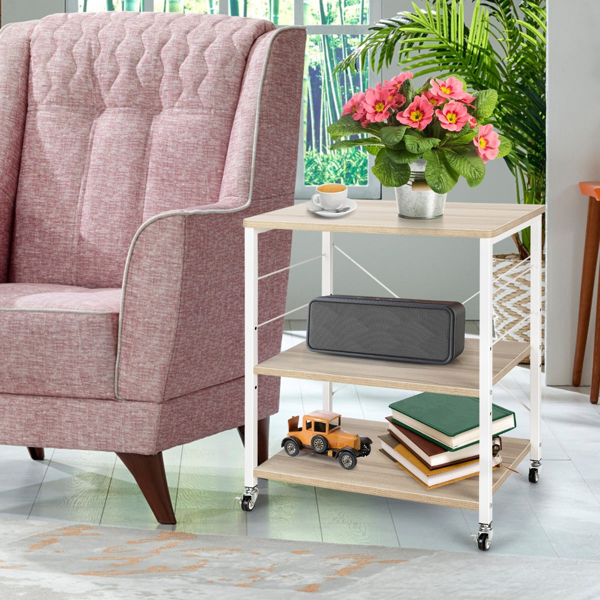 NNECW 3-Layer Stand Cart with Hooks for Office/Living Room