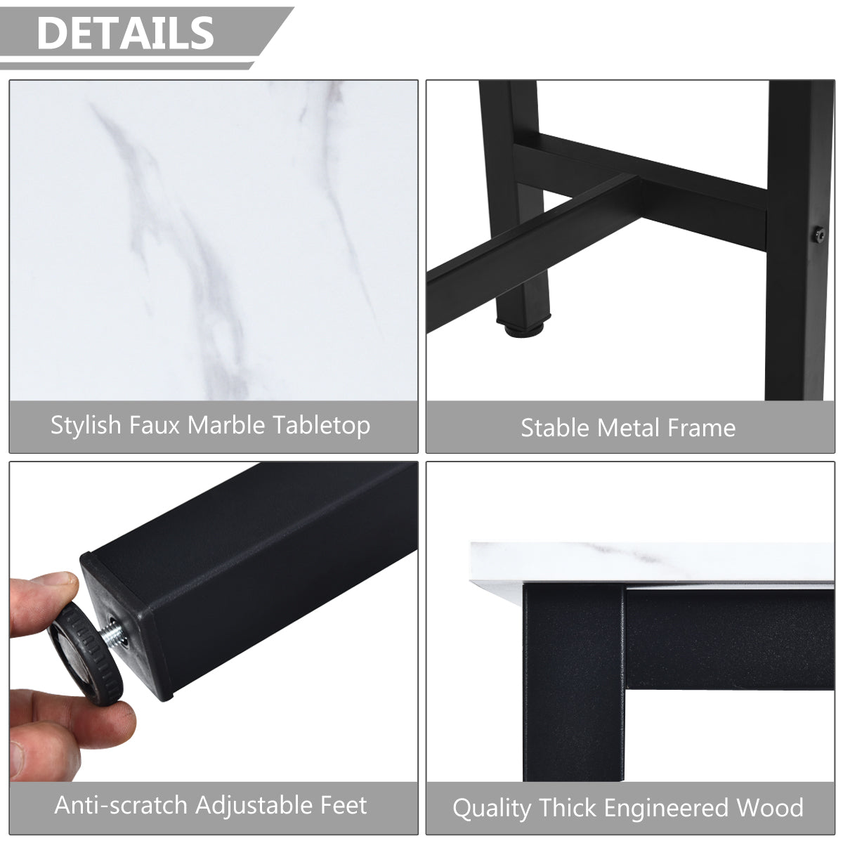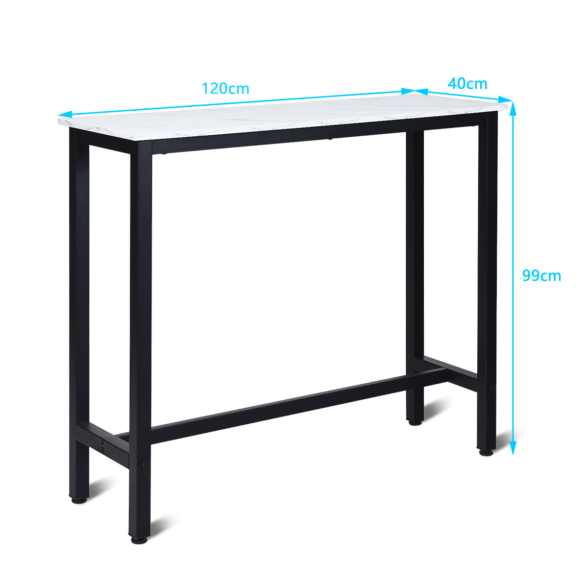 If you are eager to refresh a place with brilliant ideas, why not put our bar table set in the kitchen counter, restaurant or bar? From premium materials to stylish designs, this set of bar table and chairs will bring you great satisfaction. The table and chair combination is made of eco-friendly P2 grade of chipboard, which has extremely high durability and toughness. The crossbar at the bottom of the bar not only allows your feet to rest, but also acts as a reinforcement. When you sit in front of the bar and drink, the solid bar stool will strongly support you. Bullet Point: Sturdy & Durable Construction: Made of high-quality P2 particleboard, the 3PC set are wear-resistant without easy deformation and breakage, ensuring long-term use. The square metal legs ensure that the stool has excellent bearing capacity of 113 kg. And the solid metal legs and crossbar make this table stable enough with excellent bearing capacity of 100 kg. Space-saving Design: This bar table has a compact size of 120 x 40 x 100 cm (L x W x H), which is ideal for small spaces. And there is a spacious space under the table for placing stools. For people with limited space and extra storage needs, it’s definitely an ideal solution to maximize space utilization. Simple & Modern Appearance: The simple lines and beautiful faux marble texture create a relaxed and fashionable appearance, which can complement various modern decorative themes. Wide Range of Application: With a unique industrial look, these 3-pc set are eye-catching decoration no matter where they are placed. It's the best choice beside a high dining table or kitchen counter and is suitable for restaurants, bars, cafes, patios, family kitchens or other places. Easy to Assemble and Clean: With detailed assembly instruction and all hardware delivered, it is easy to set up your bar stools and table. The smooth surface facilitates daily maintenance, stains left on the stools can be quickly wiped with a soft damp cloth, which saves your time and labor. Features: Made of superior P2 particleboard to ensure durability Thicken structure and square legs, stable and safe to use Bar counter with adjustable feet for added stability Modern marble-style table top adds a chic and elegant look Suitable for narrow spaces of reasonable size Perfect for restaurants, cafe, pub, bar, kitchen With clear instructions, easy to install Specifications: Color: White/Black Material: P2 Particleboard + Iron Overall dimension of table: 120 x 40 x 100 cm (L x W x H) Overall dimension of stool: 30 x 30 x 70.5 cm (L x W x H) Net weight of table: 14 kg Net weight of each stool: 7.5 kg Weight capacity of table: 100 kg Weight capacity of each stool: 113 kg Package includes: 1 x Bar Table 2 x Bar Stool 1 x Instruction Box Qty:2(May vary by batch)