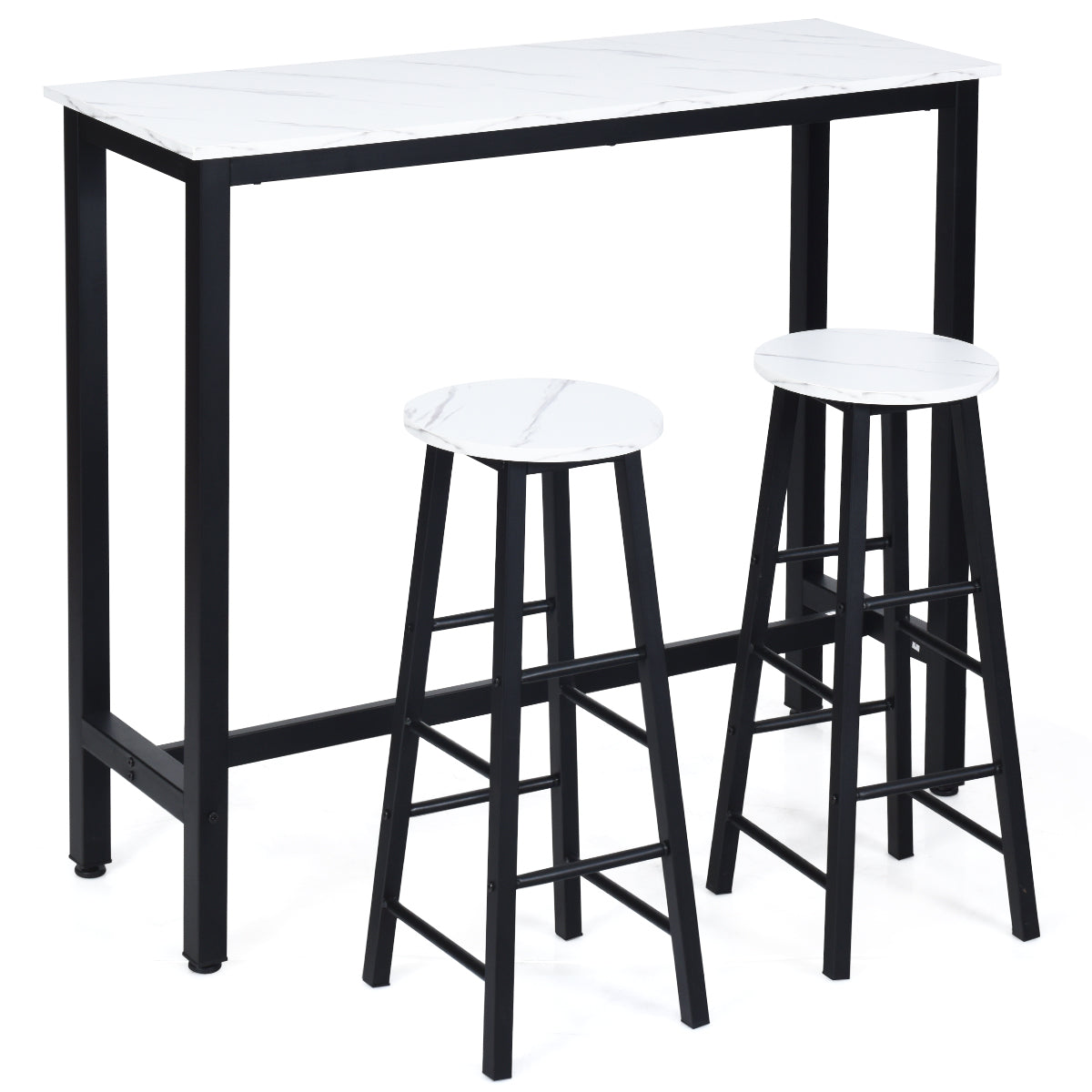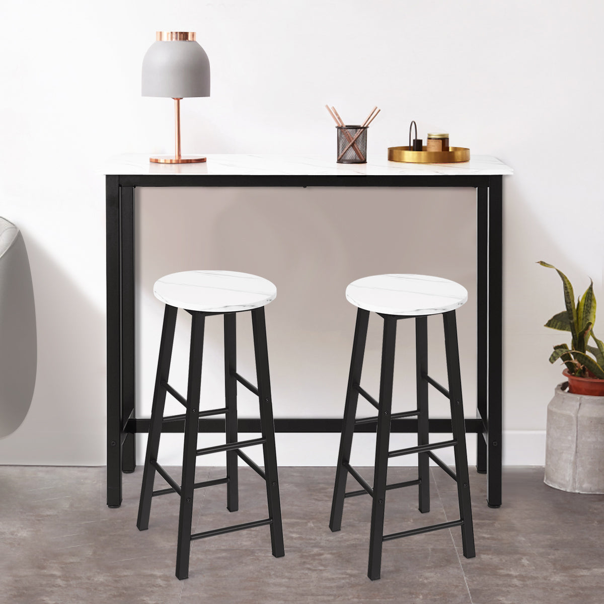 NNECW 3 pieces High Bar Table Stools Set with Stylish Design for Dining Room White