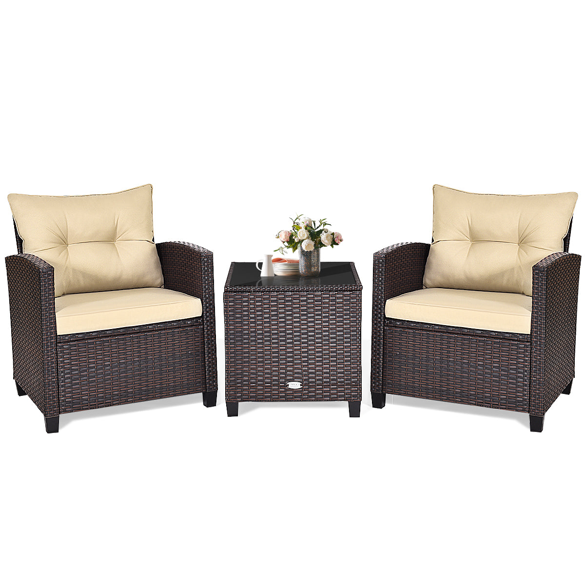 NNECW 3 Pieces Wicker Sofa Set with Washable Cushion for Patio