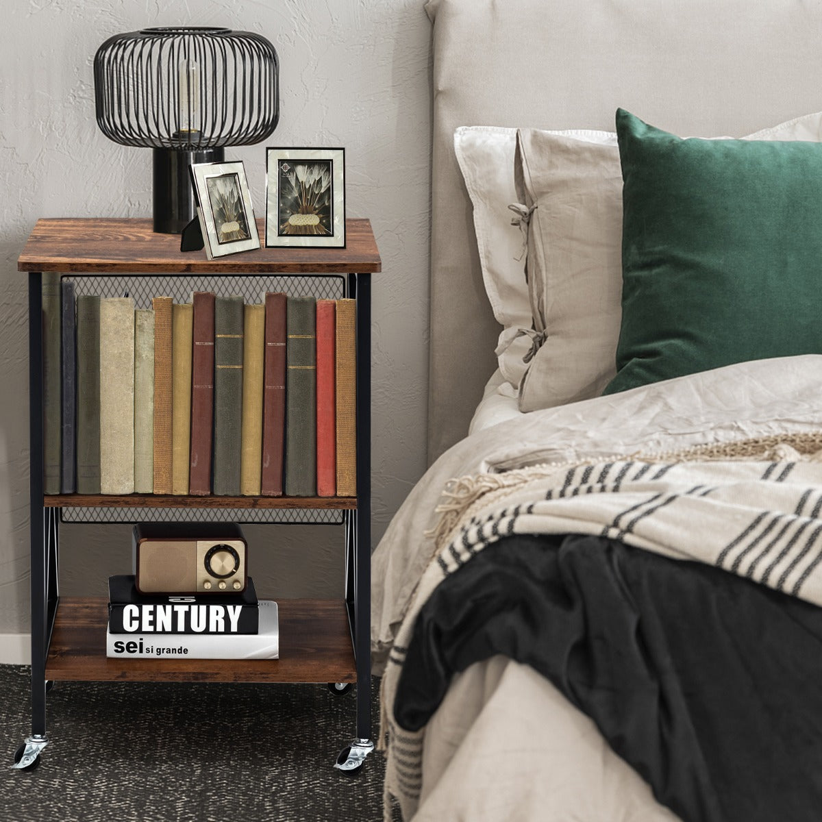 NNECW 3-tier Rolling Stand with 3 Dividers and Steel Frame for Living Room/Office