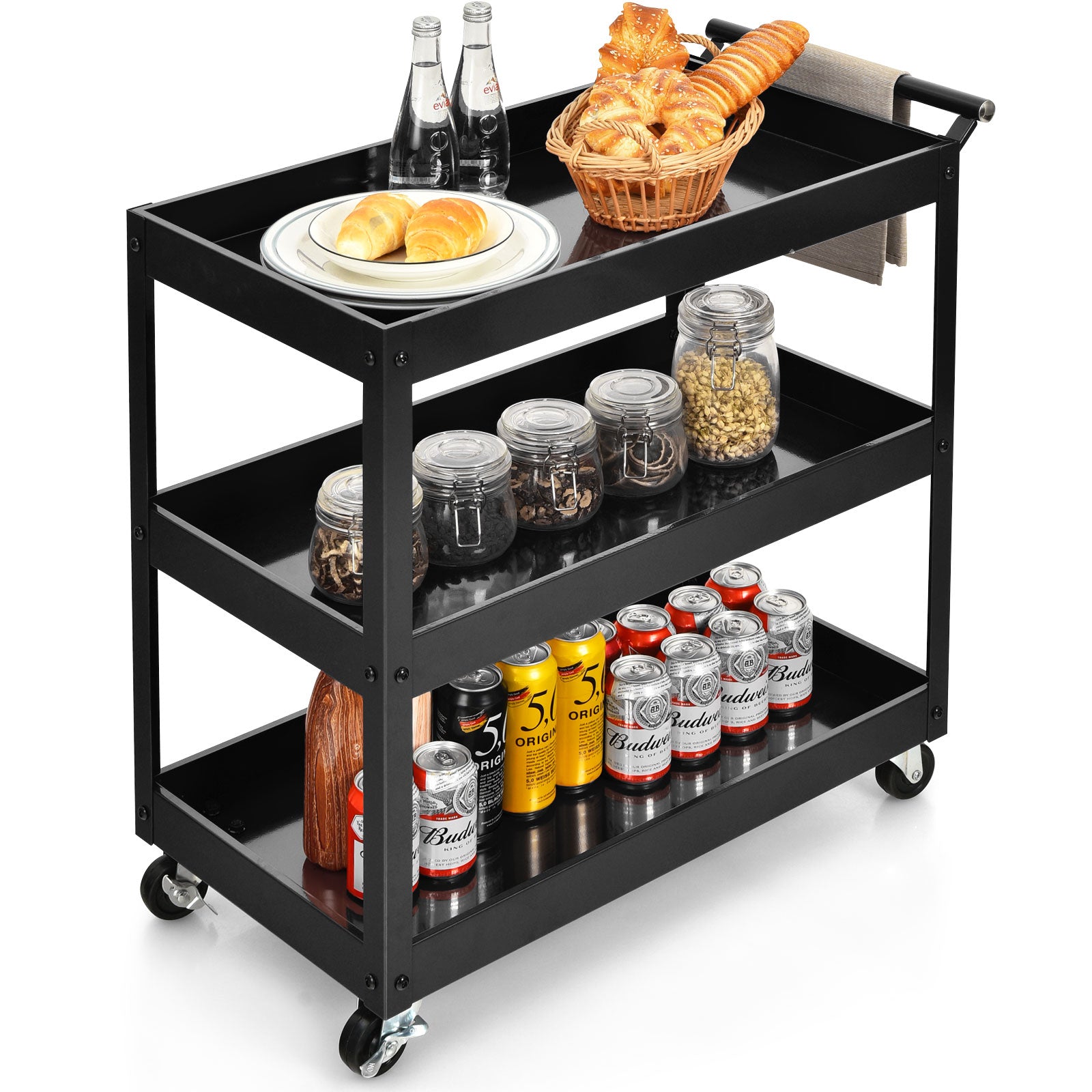 NNECW 3-Tier Utility Cart with Humanized Handle for Office Kitchen-Black