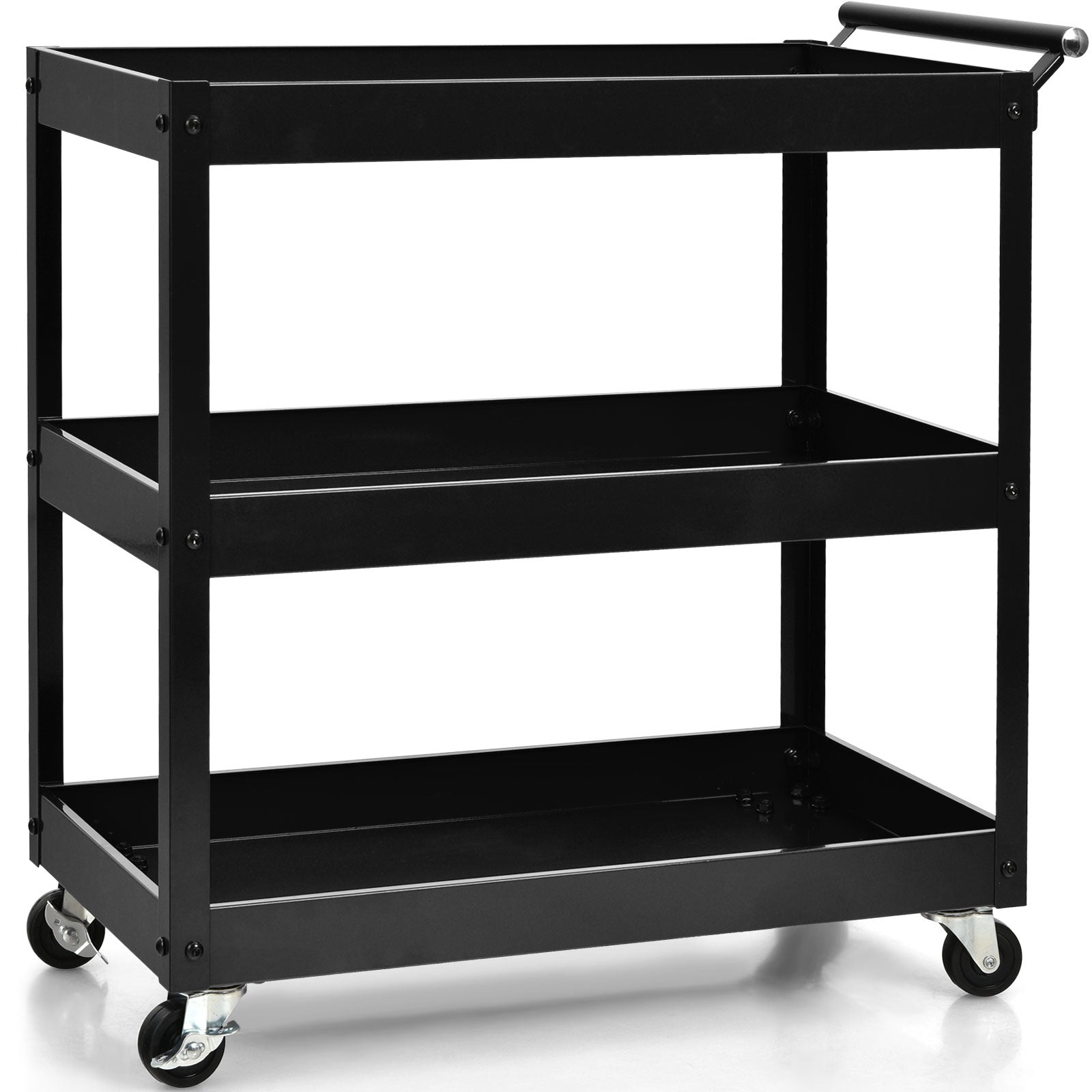 Well-selected Material: Adopting sturdy steel construction, this heavy-duty service cart has a high load-bearing capacity, and each tier can hold up to 25kg. Durable shelves will not rust or dent easily, so they can be a great addition to your work area.