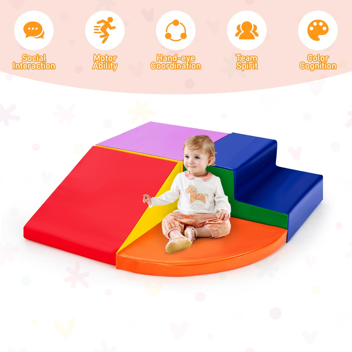 Made of high-quality EPE foam, this activity play set is safe and soft for babies to play. Plus, soft climber can protect your baby's knees and elbows from injuries. Parents can rest assured that your kids will play it safely. In addition, lightweight design makes it easy for babies to rearrange and build different configurations. And the dirt-resistant surface simplifies cleaning and maintenance steps, helping you save a lot of time and energy. If you're looking for 4-piece educational play set like this, please don't miss it! Educational Play Set: This toddler corner climber allows little ones to develop important gross motor skills such as climbing, crawling and sliding as they move and play at home, at daycare or in the classroom. Additionally, they can also improve hand-eye coordination and develop color cognition. Premium and Non-toxic Material: Made of odorless EPE foam, our activity play set is safe and soft for babies to play. Plus, our play set can protect your little one's knees and elbows from injuries. In addition, it will not deform easily even under the impact of external forces. Lightweight Design: The EPE foam filler is lightweight, which makes it convenient for babies to rearrange and build different configurations. And fine swing keeps the cover from falling apart. at the same time, both the slide and the ladder are easy to move, which can effectively prevent the baby from slipping or falling. Easy to Clean and Maintain: Our soft play set is not only durable, but also very easy to clean. Even if kids accidentally drop snack or drink, dirty things can be wiped immediately because of waterproof PU material covering all over the set, which saves time and manpower. Countless Uses for Different Locations: With multiple-color appearance, our foam set become a captivating addition to many places, such as living room, bedroom and kindergarten. In addition, the compact size and light weight make it convenient for transfer from one room to another. Features: Improve gross motor skills such as climbing, crawling and sliding Improve hand-eye coordination and gain confidence EPE foam protects your little one's knees and elbows form injuries Lightweight for free arrangement and easy transport Waterproof PU material makes it easy to clean and maintain PU leather surface has a strong tear resistance and wear resistance Good workmanship and exquisite sewing stitches prevent cracking Ideal for kindergartens, living rooms and bedrooms Specifications: Color: Shown on the picture Material: PU+EPE Step Size: 45.5 x 45.5 x 25 cm (L X W X H) Ramp Size: 45.5 x 45.5 x 25 cm (L X W X H) Square Size: 45.5 x 45.5 x 25 cm (L X W X H) Sector Size: 45.5 x 45.5 x 5 cm (L X W X H) Net Weight: 4 kg Package Includes: 1 x Step 1 x Ramp 1 x Square 1 x Sector Box Qty:1(May vary by batch)