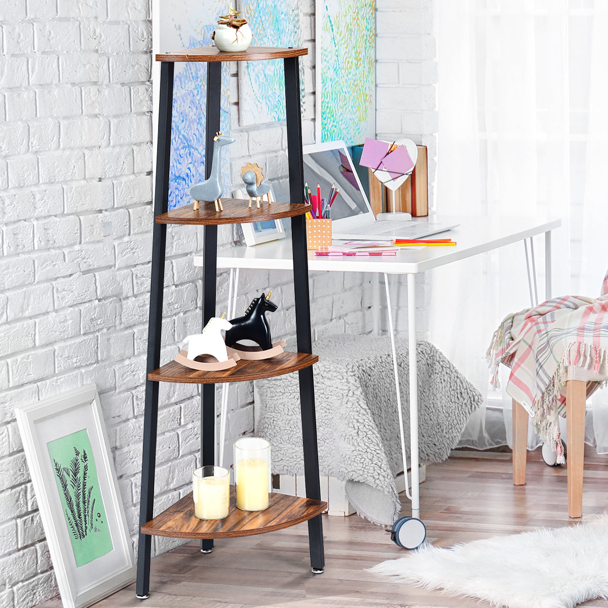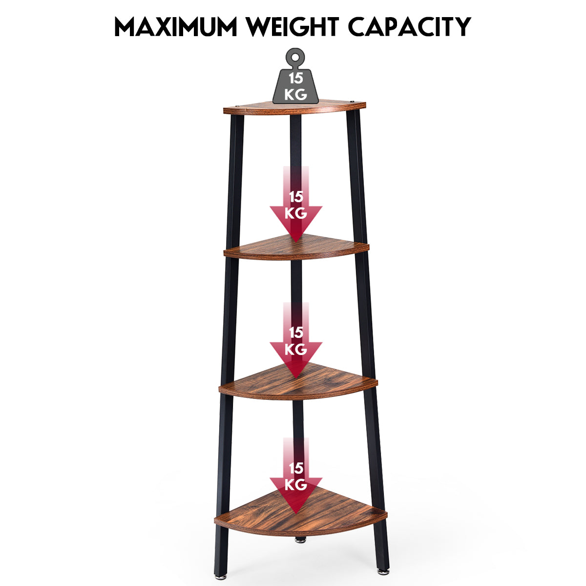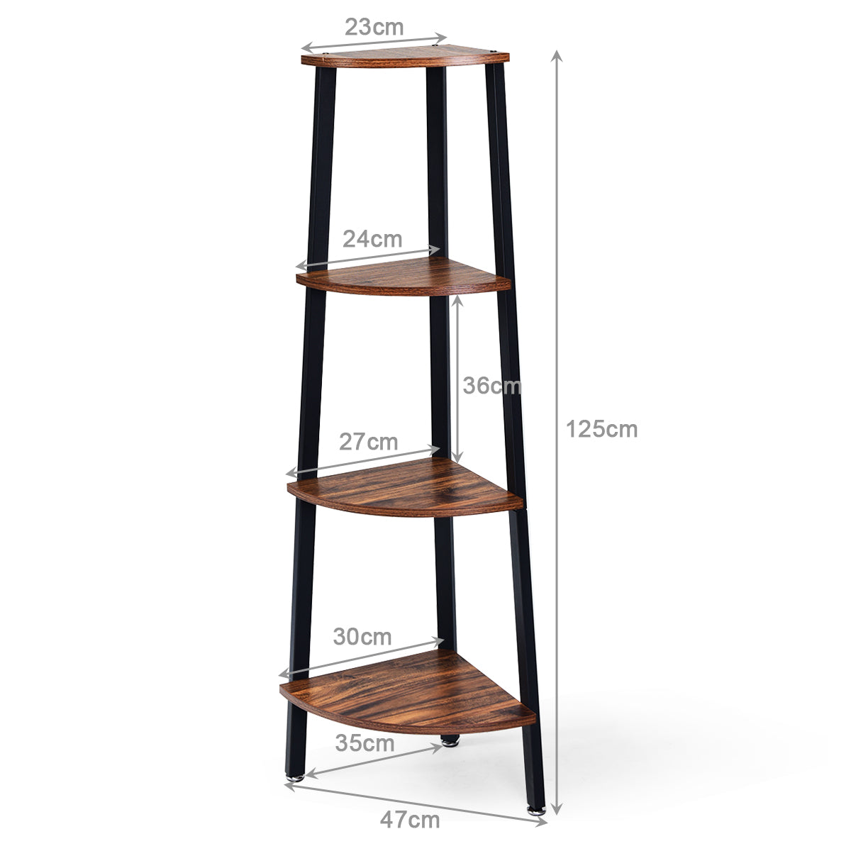 A practical shelf can freshen up your room in every respect. Our 4-tier corner shelf is elaborately crafted which is friendly to the compact space such as the kitchen, study, living room, bedroom and so on. This storage shelf is durable and stable because of the premium chipboard and metal material. Four open shelves can satisfy your large storage requirements. The industrial and simple design decorates your living areas and creates additional space in your home. Our 4-tier shelf is multi-function; it is not only can a shelf to store books, decorations and toiletries but also a pergola if you want to plant some flowers to decorate your home. So beautify every last corner of your home with this stylish corner shelf.