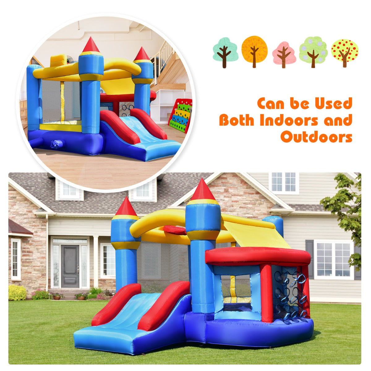 Quick Setup & Wide Application: This jumping castle can be set up and taken down easily with a blower within few minutes. And the carrying bag allows for convenient storage when not in use and easy transportation for outdoor activities anytime. It’s ideal for the park, lawn, backyard, or your large living room.