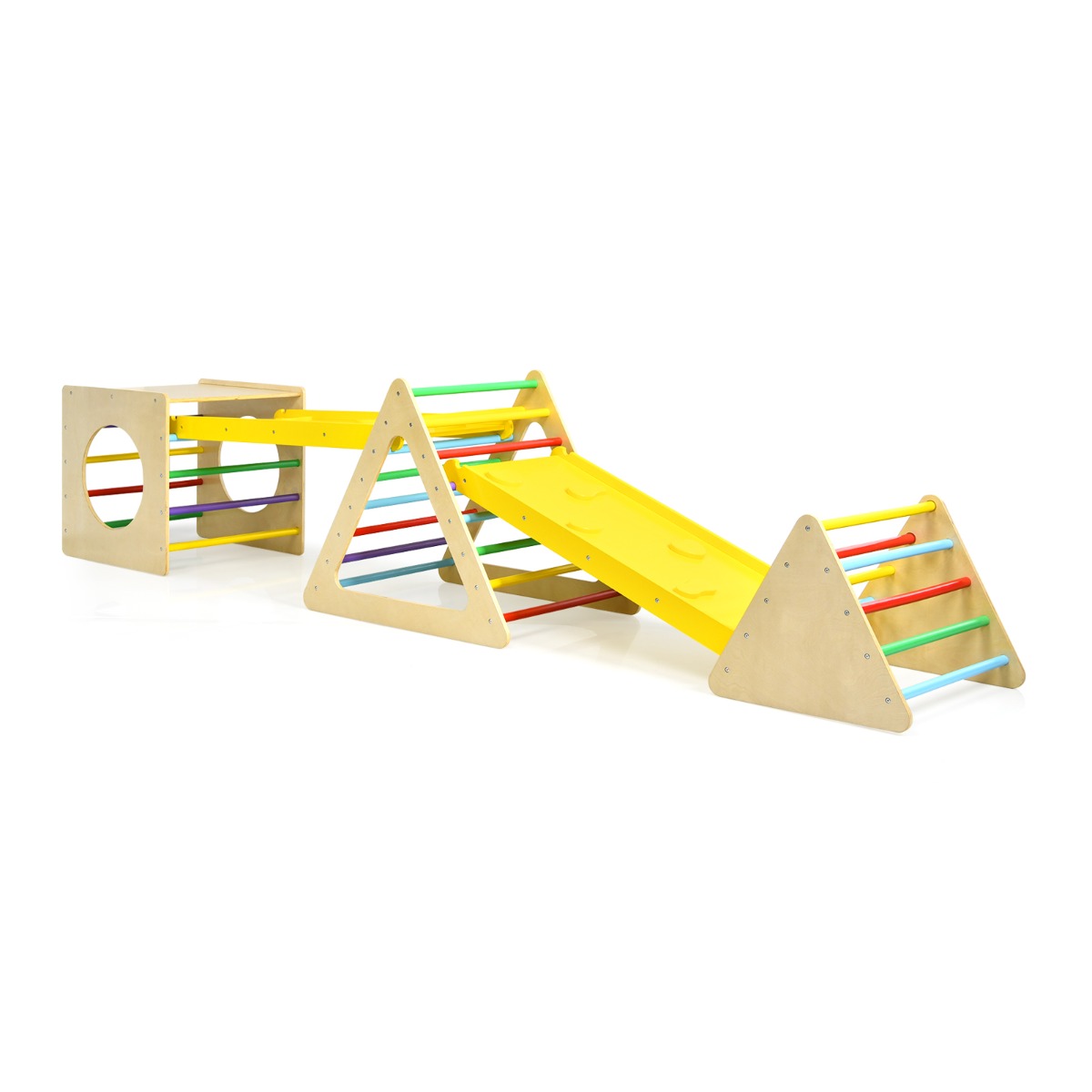 NNECW 5 in 1 Montessori Climbing Triangle & Cube with Slide Board for Kids