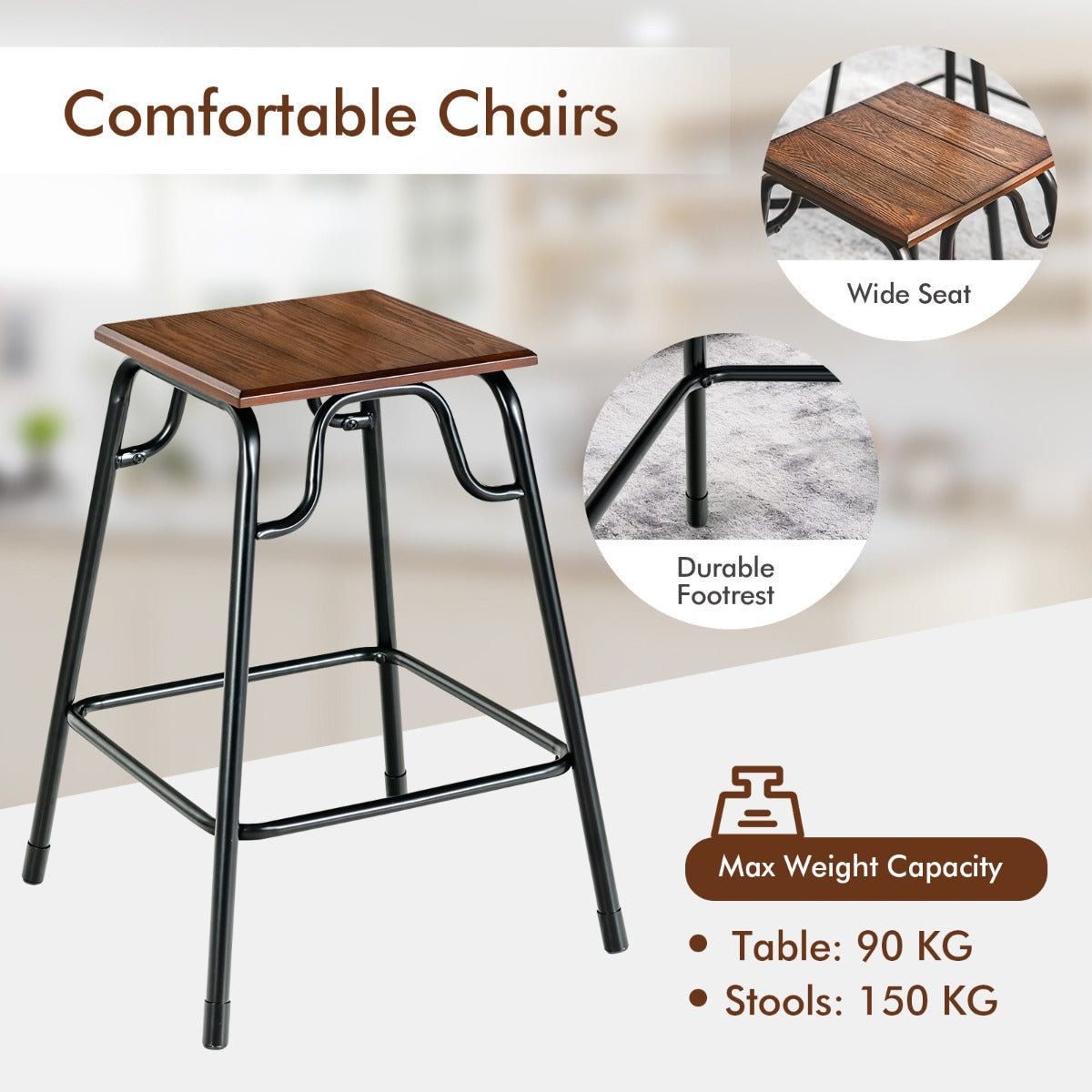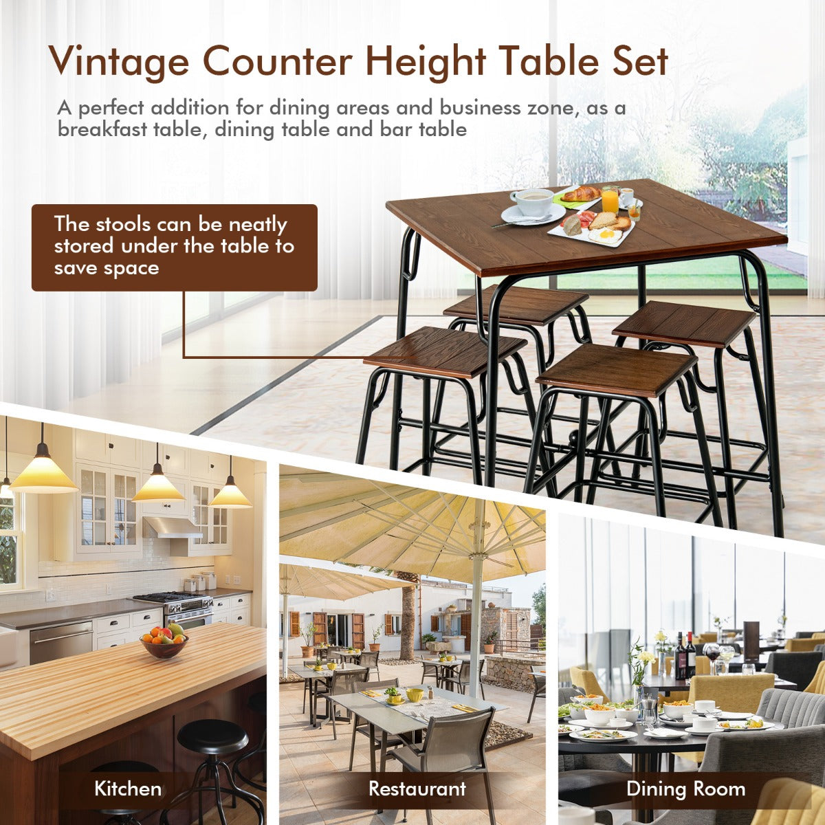 5 Piece Pub Dining Set: This pub table set includes a square table and 4 stools for wide application. With the combination of delicate retro wood veneer and chic look, it blends with your various styles of furniture and decorations. It is a perfect addition for dining areas and business zone, as a breakfast table, dining table and bar table.