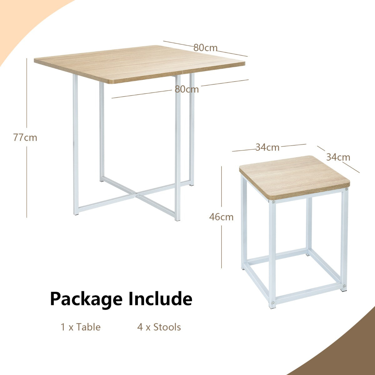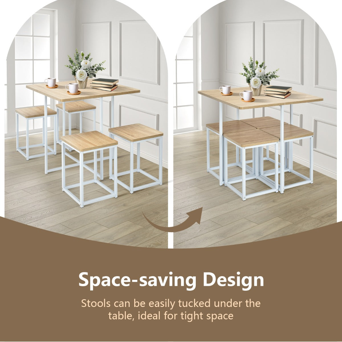 NNECW 5-Piece Dining Table Set with 4 Square Stools for Small Space-Natural