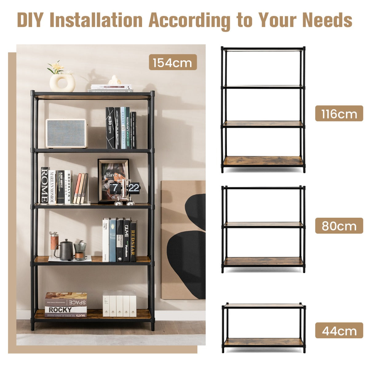 NNECW 5-Tier Tall Bookshelf with Rustic Wood Grain & Heavy-duty Metal Frame for Home Office