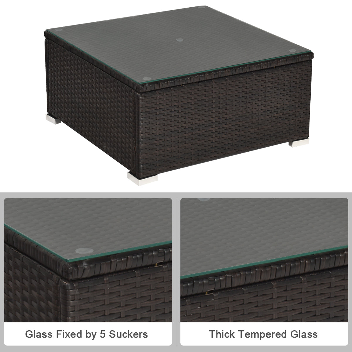 Material: PE Rattan, Steel, Sponge, Tempered Glass Corner