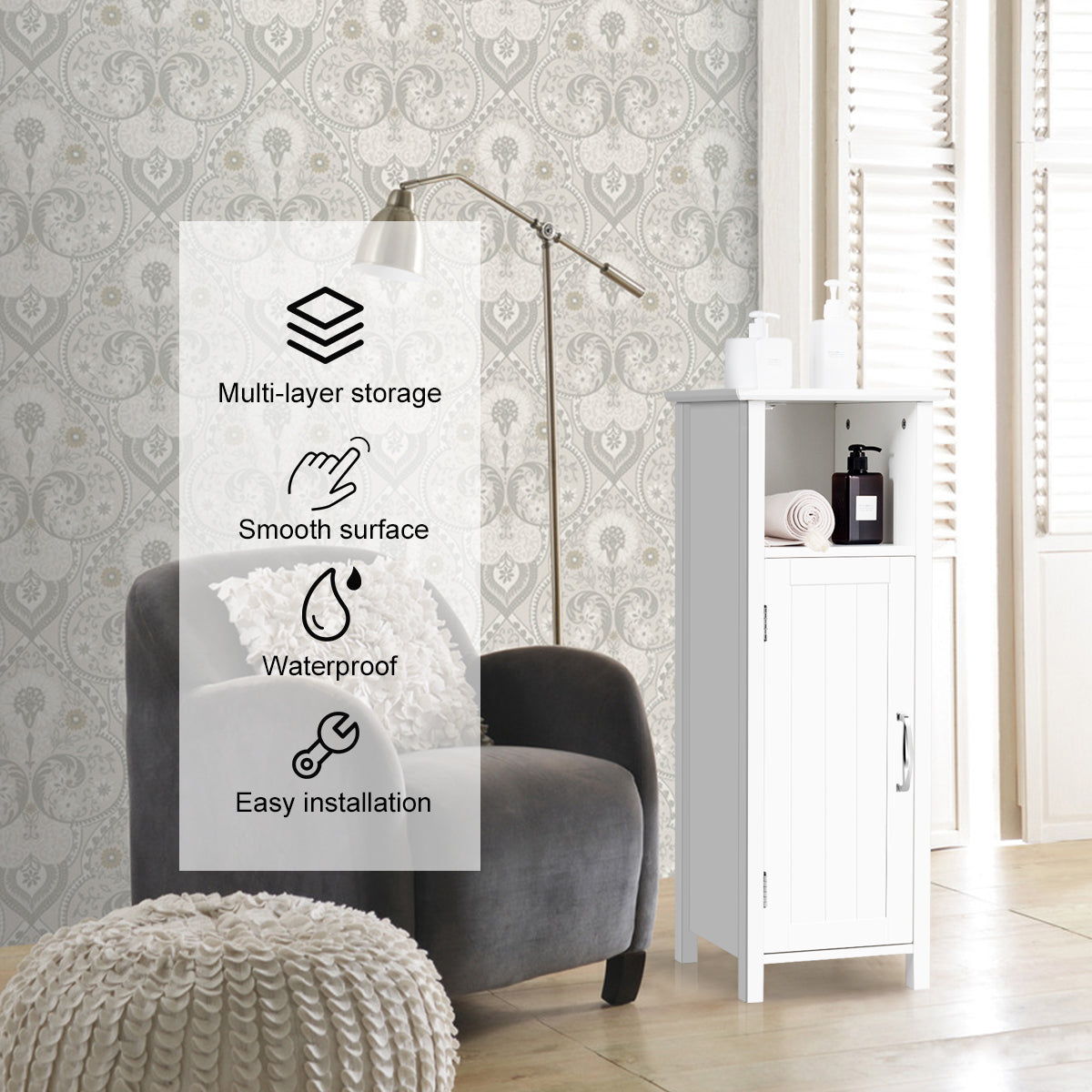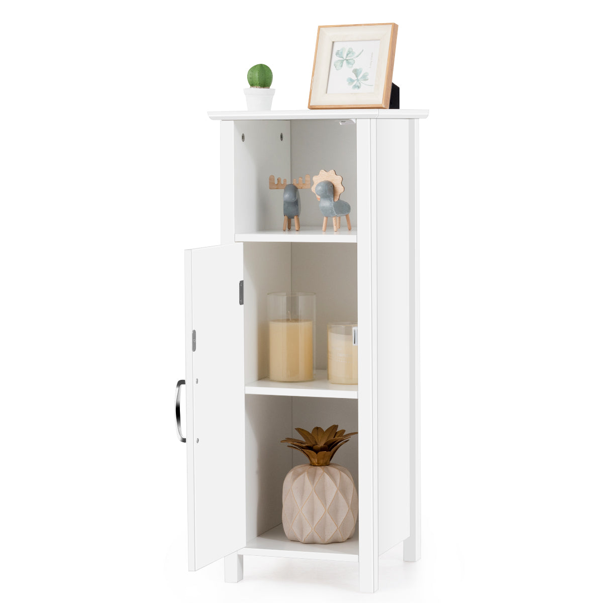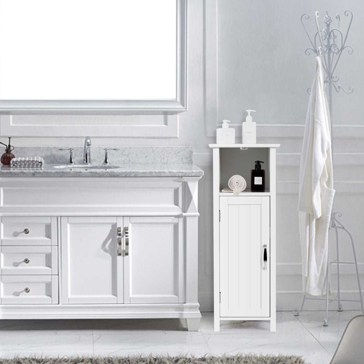 NNECW Adjustable Floor Storage Cabinet with Single Door for Bathroom-White