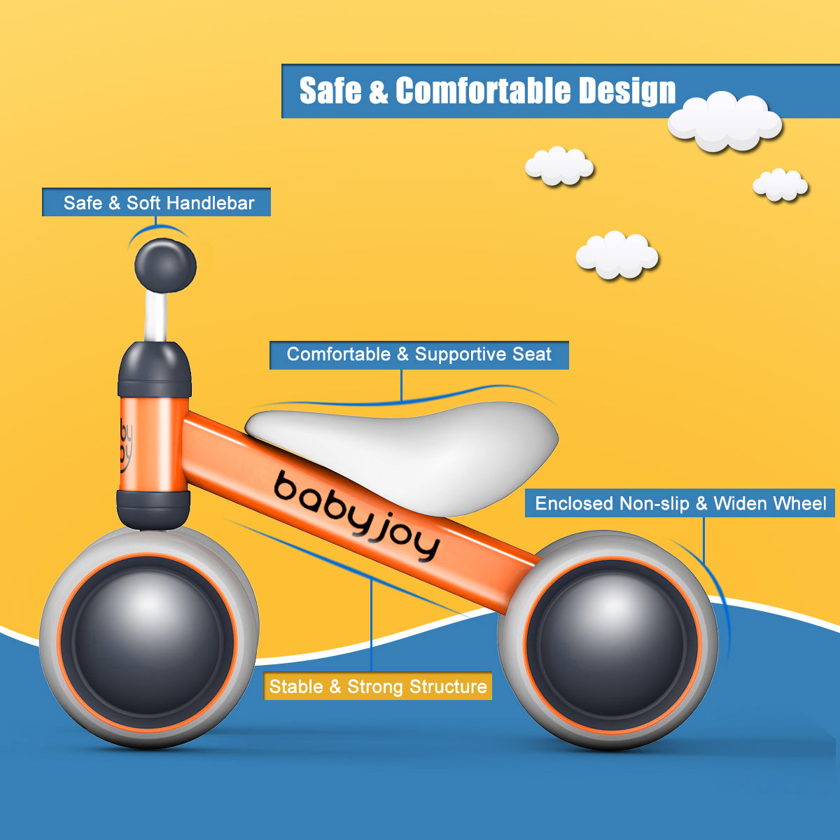 Perfect Gift For Kids: Excellent baby balance bike helps kids to learn the basic of balance, walking, steering, riding skills and provokes your baby's athletic talent at an early age. Meanwhile, baby can use their feet to go forward and back which can practice his(her) leg force. It brings fun and confidence to children, bring them wonderful childhood.