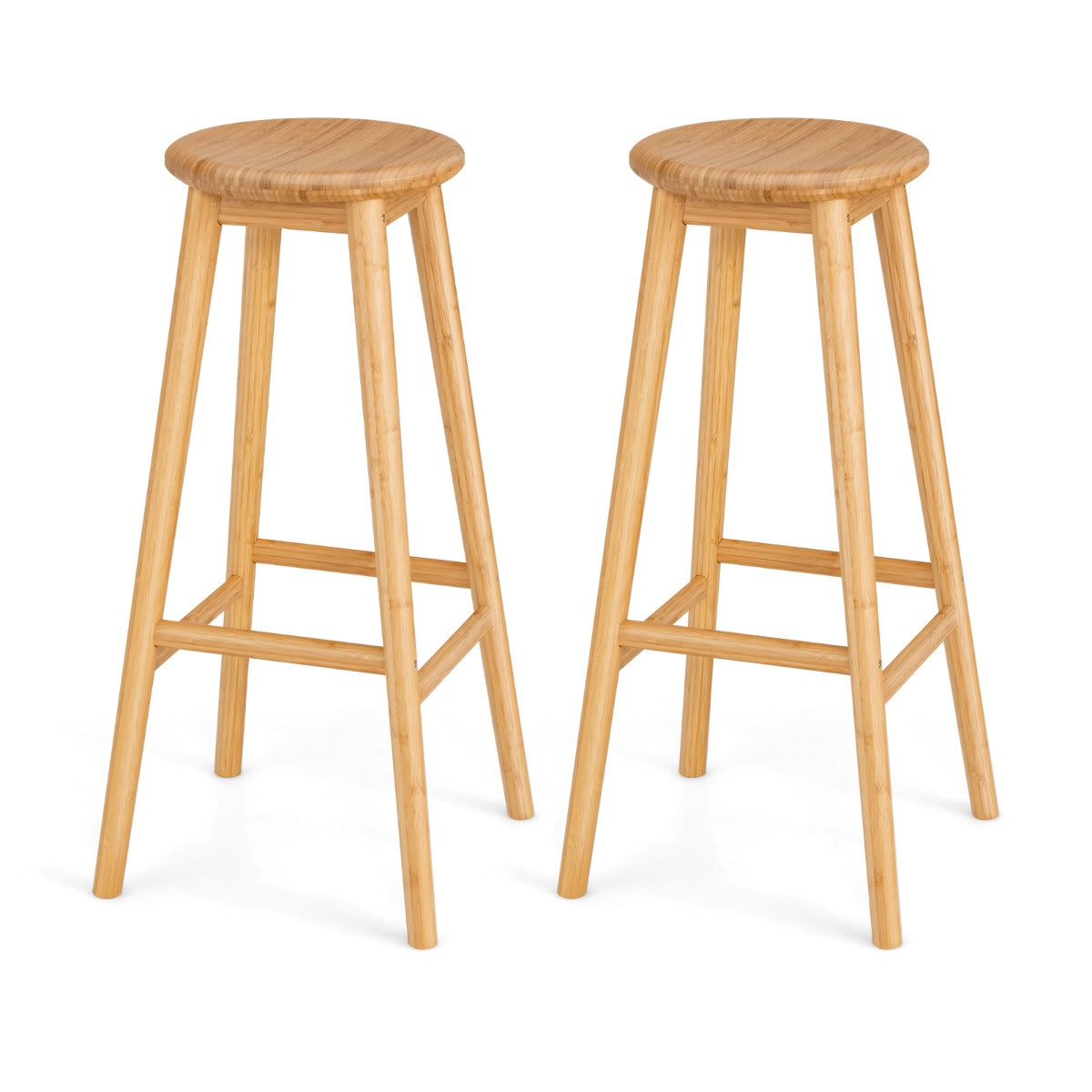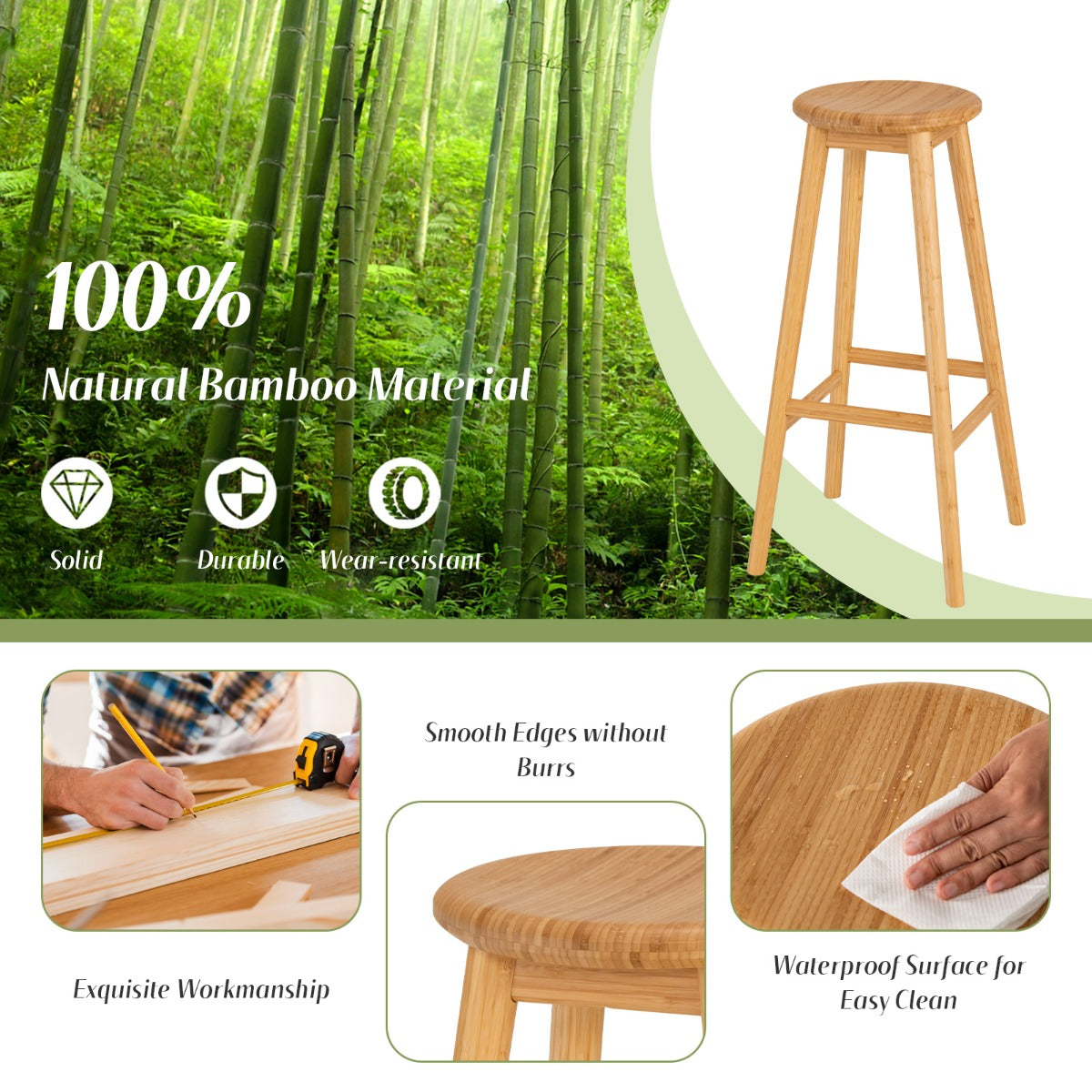 Simple Design & Elegant Charm: This backless round seat bamboo bar stool set is a perfect combination of comfort and simple modern style. With the exquisite workmanship and natural wood grain surface, these bar-height dining chairs can fit well with any home decoration style and bring elegance to your home.