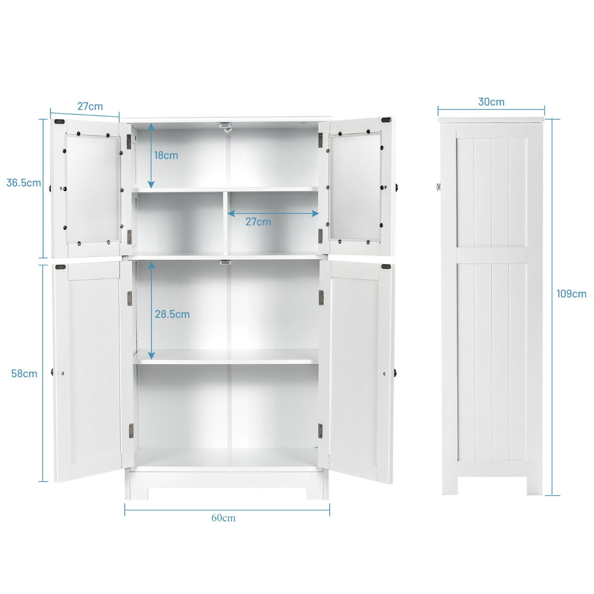 Stable Structure & Anti-toppling Device: The freestanding floor cabinet is made of sturdy MDF boards, which have been painted for extra durability and easy maintenance. What's more, the cabinet is fixed with durable wall-anchor fittings that can provide improved anti-toppling protection to ensure safer use.