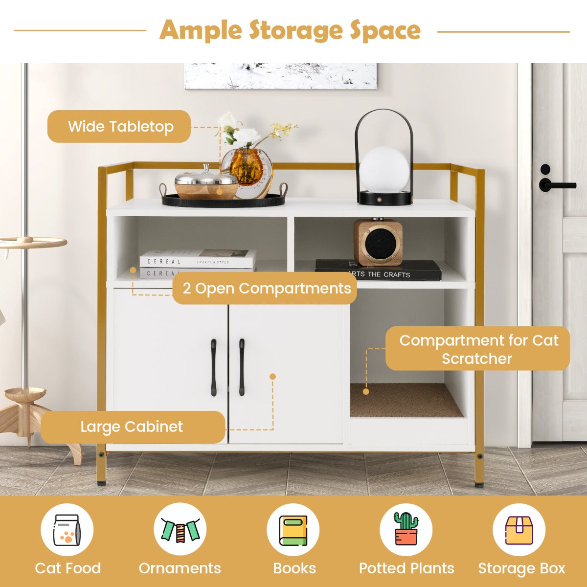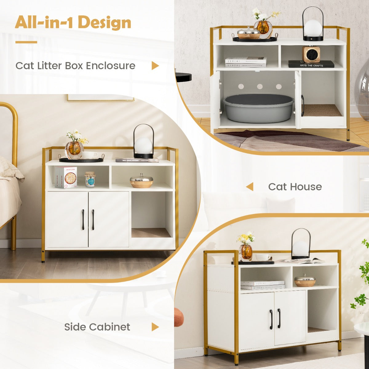 NNECW Cat Litter Box Enclosure with Double Doors & Scratch Cardboard-White