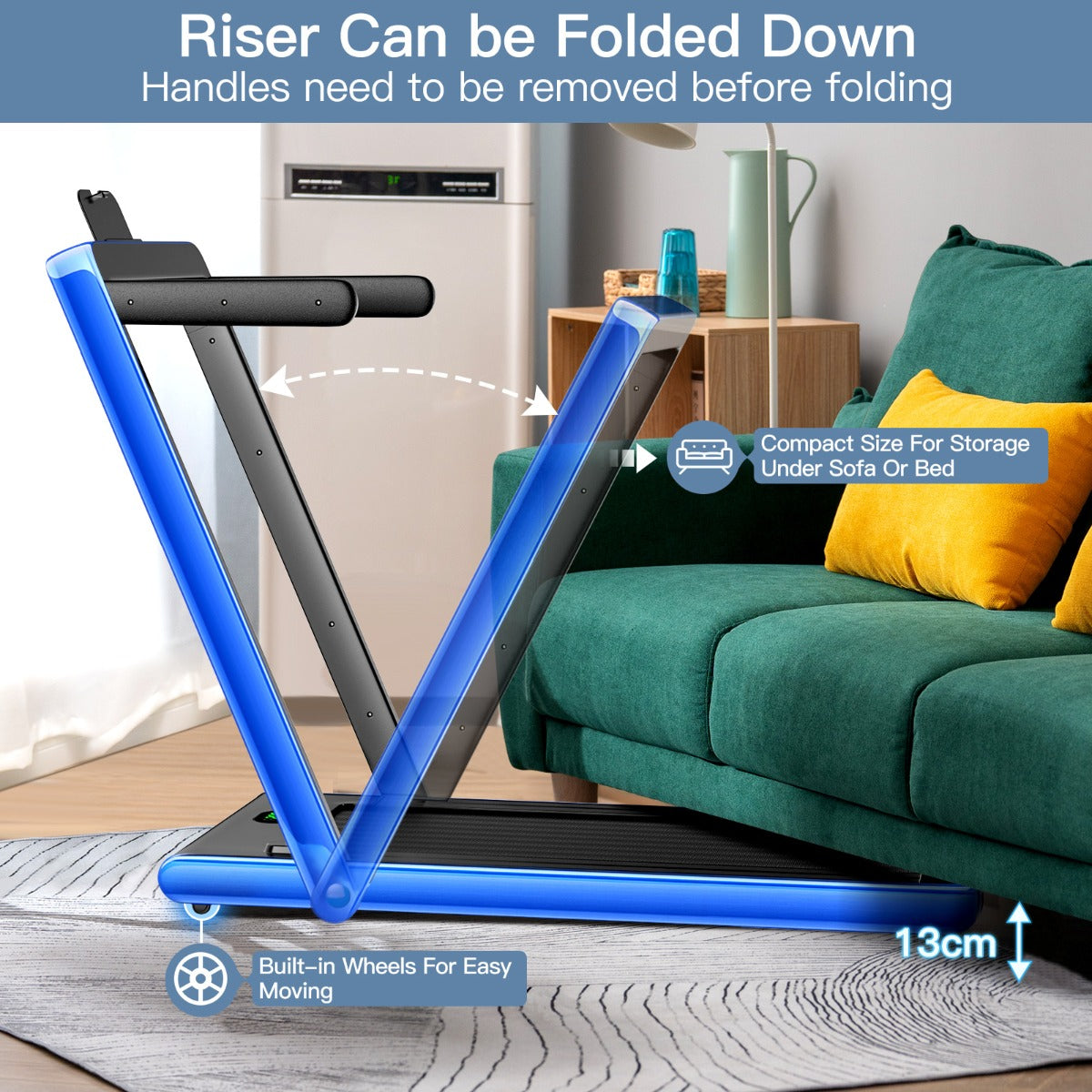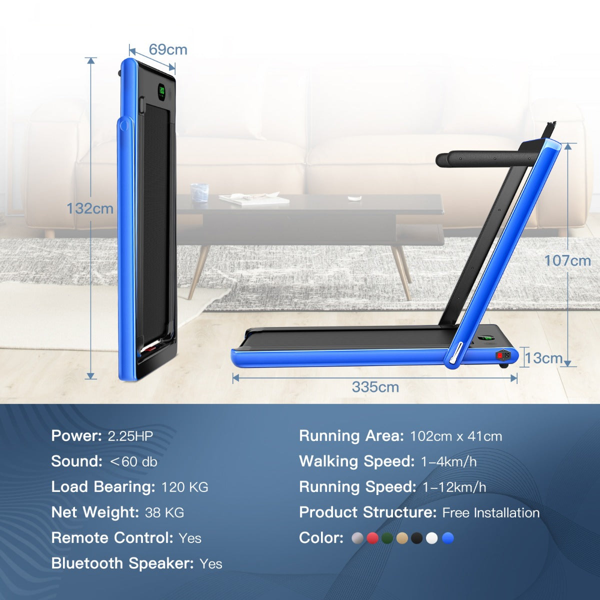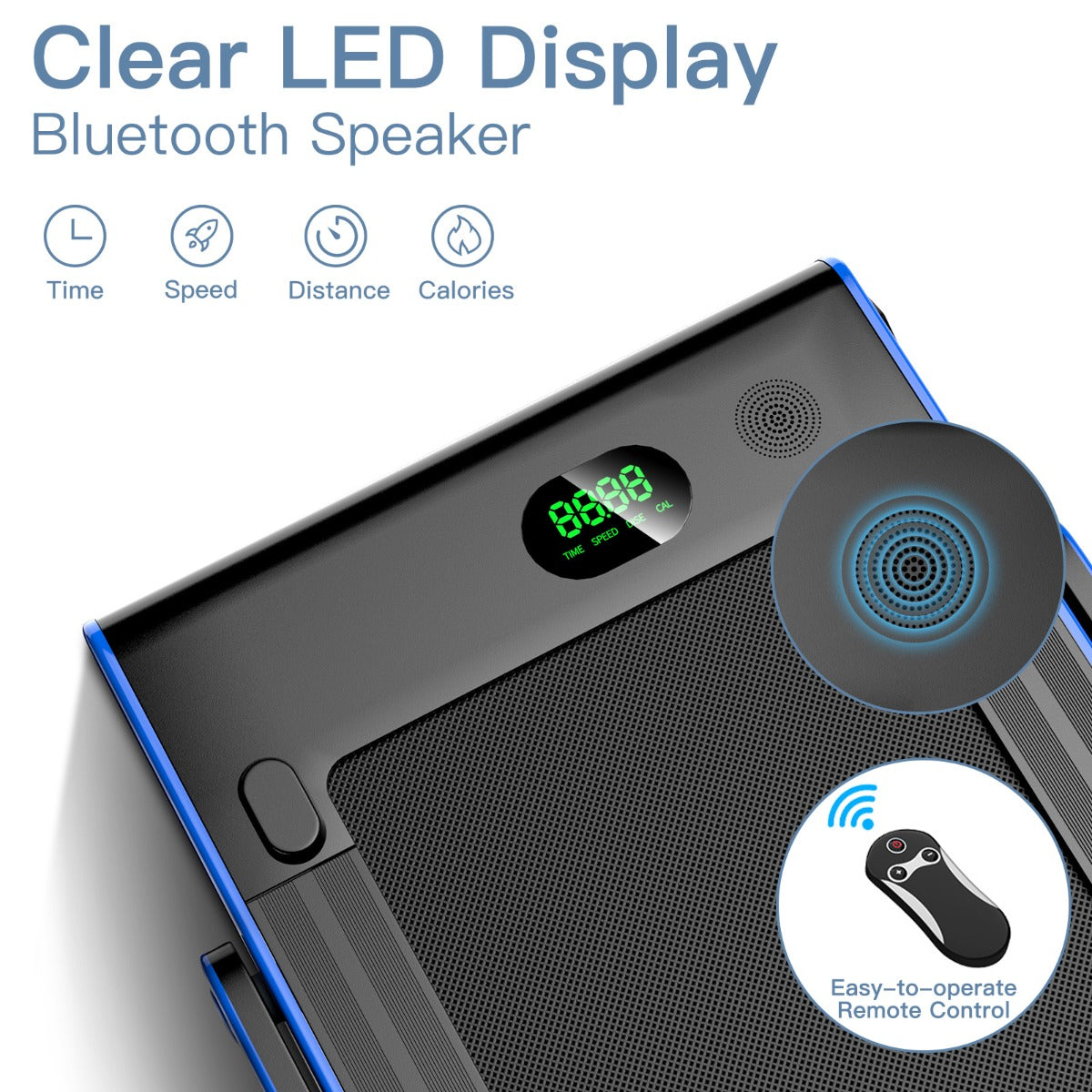 NNECW Electric Folding Treadmill with Bluetooth Speaker for Home Blue