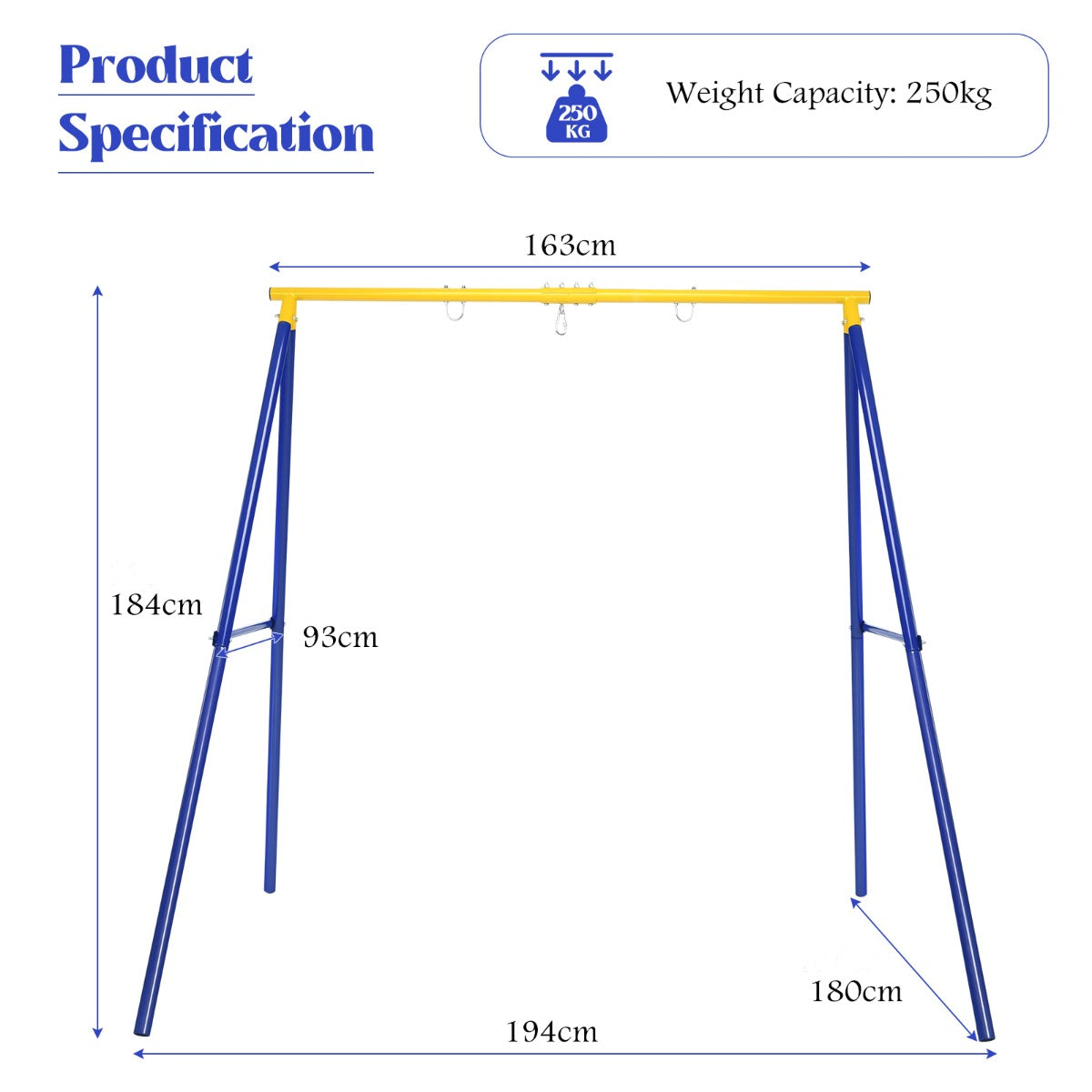 Stable & Robust Metal Frame: Constructed with approximately 3.8cm diameter iron tubes, this A-shape swing frame made of full metal provides you with super stability. In addition, there are 4 ground stakes to help you increase its sturdiness on grass. Such a reliable swing stand can hold up to 250kg which is suitable for people of different ages.