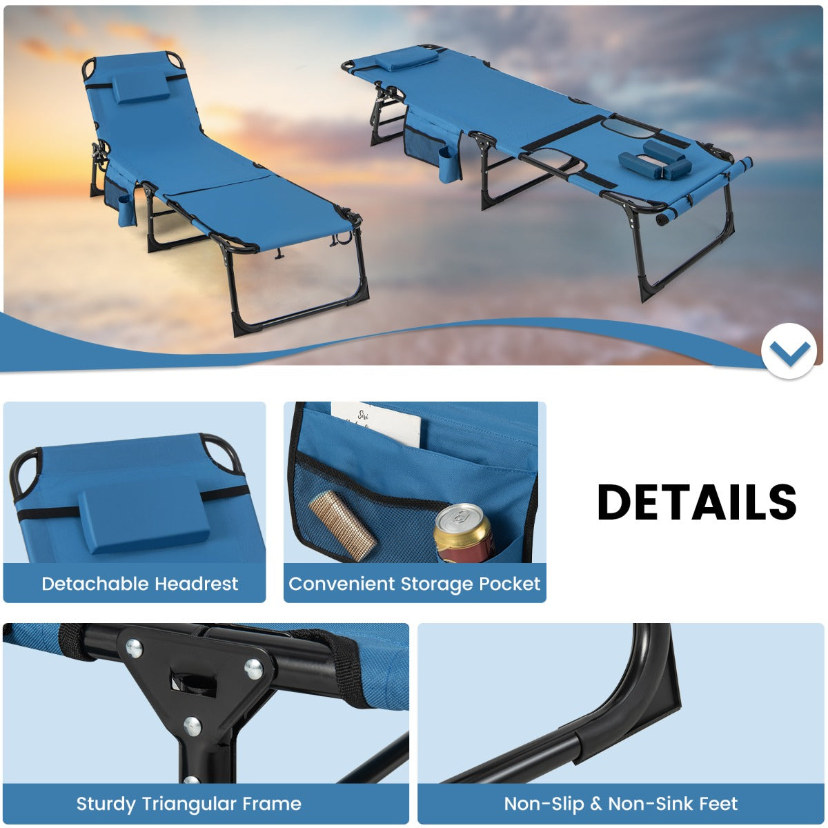 NNECW Foldable Beach Lounge Chair with 5-Position Adjustable Backrest-Blue