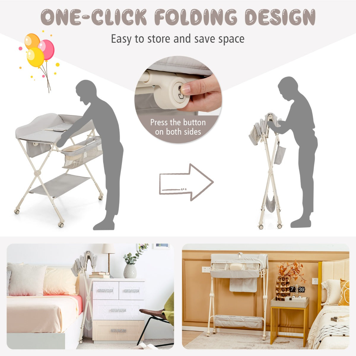 Easy Mobility & Quick Folding: Our diaper changing table comes with 4 lockable universal wheels to provide effortless movement from room to room, which are also removable as you wish. Featuring one-click folding design, you can quickly fold the changing table into a compact size without taking out the built-in support board.