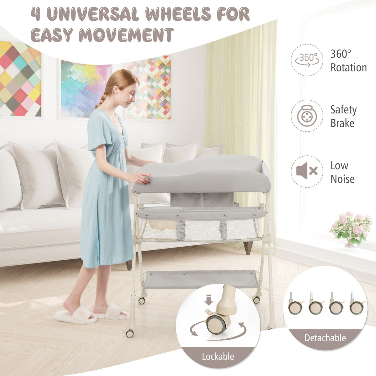 NNECW Foldable Diaper Changing Station Height Adjustable Changing Table with Lockable Wheels