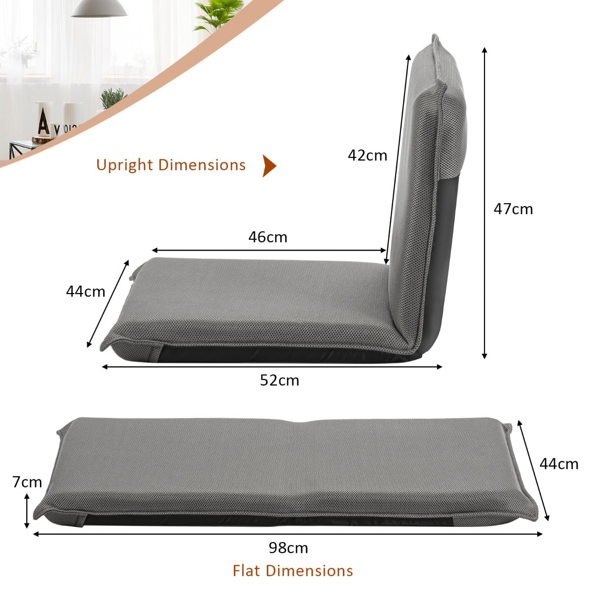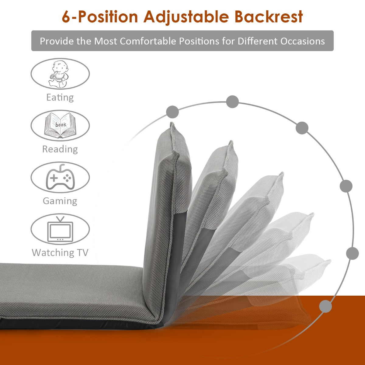 Are you looking for a floor chair with a reclining function? Then our floor chair is a good choice! The backrest can be adjusted in 6 different positions (including completely flat). So you will always find the most comfortable position. The backrest and seat cushion are filled with foam, which is comfortable and soft. You can put the floor chair in the living room, on the balcony or in the bedroom to watch TV, play and even sleep on it. This floor chair is also a great gift for family and friends.