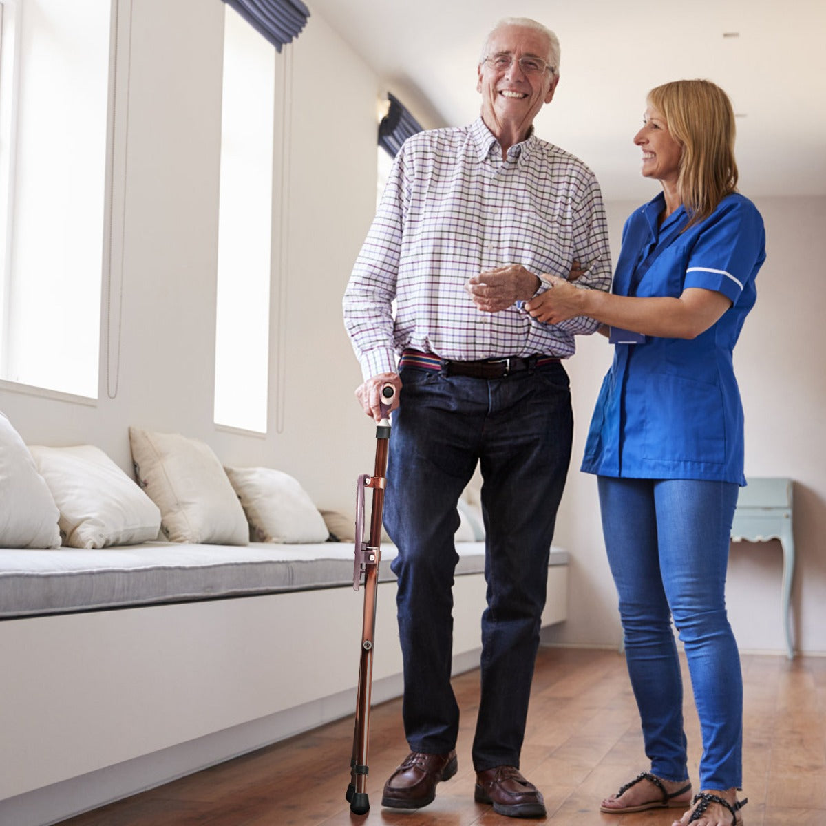 Wonderful Gift for Families: Strongly recommends this cane for users on the go, also it is great for travel, waiting at the bus stop, on a cruise, lines and waiting. Nice gift choice for elders or yourself, very handy and portable walking stick both for men and women. (Free gift: 1 cushion cover and 3 foot pads)