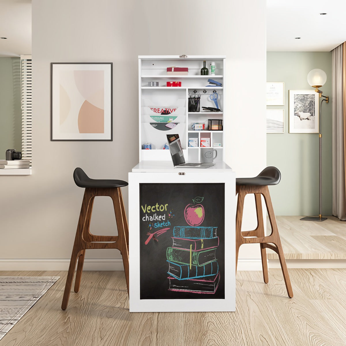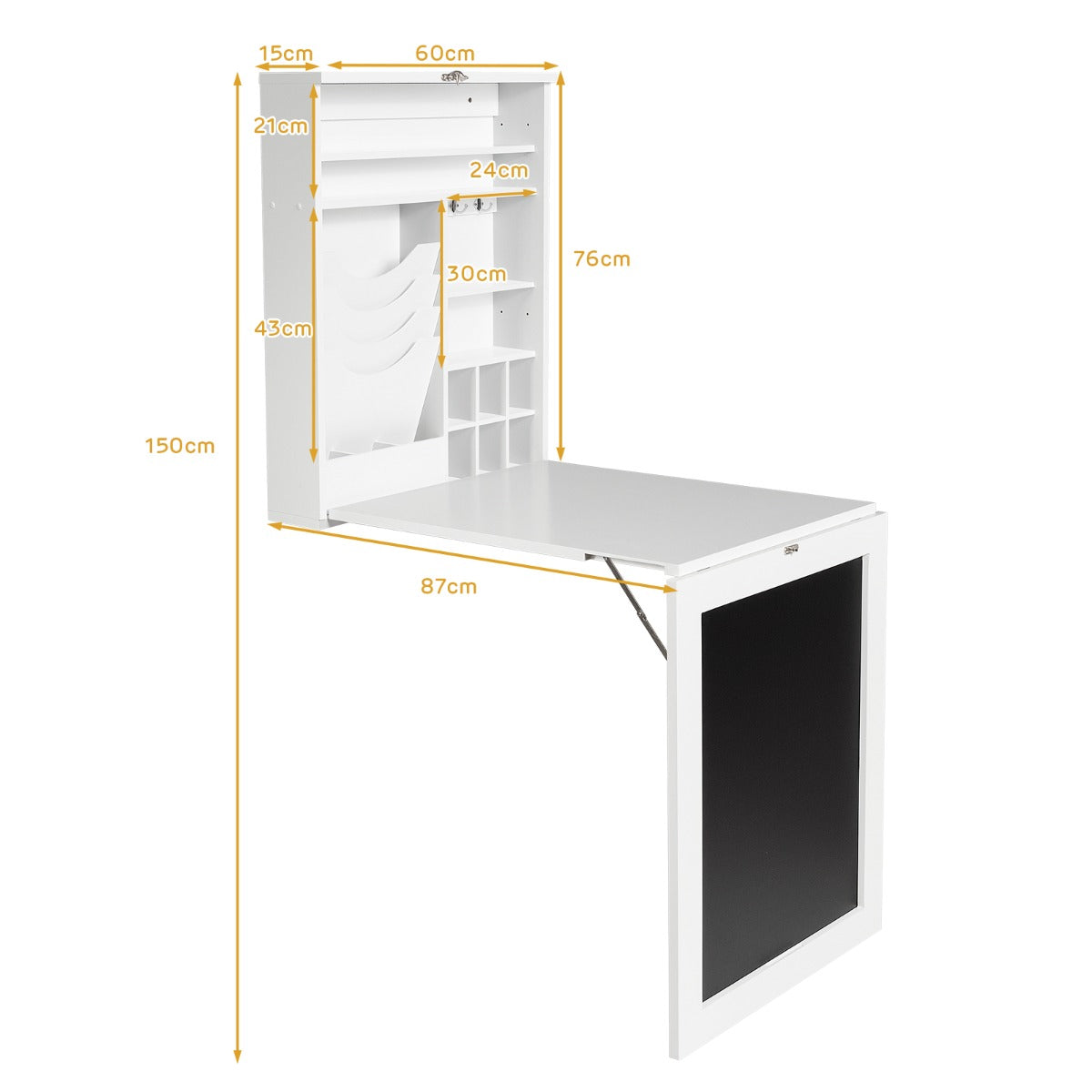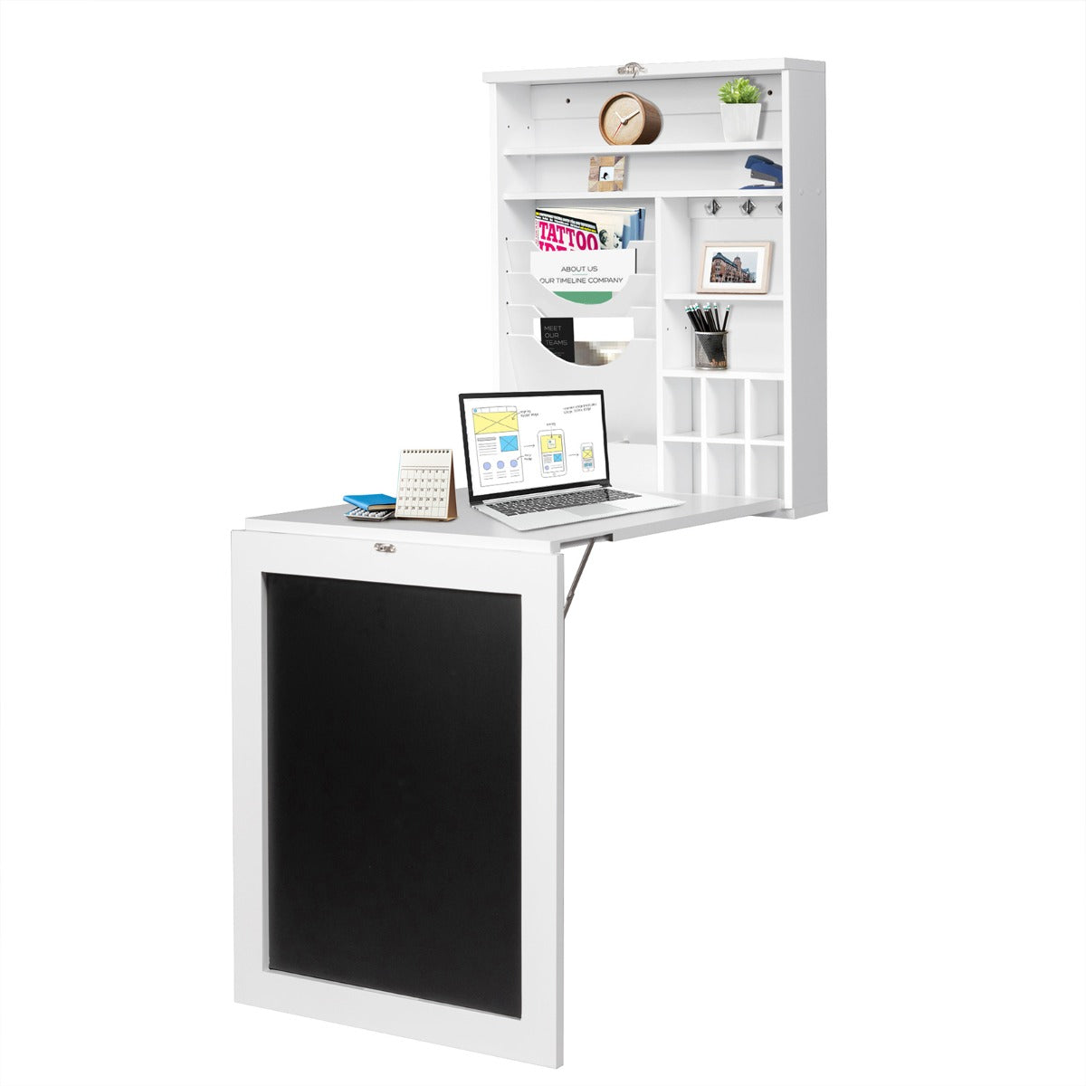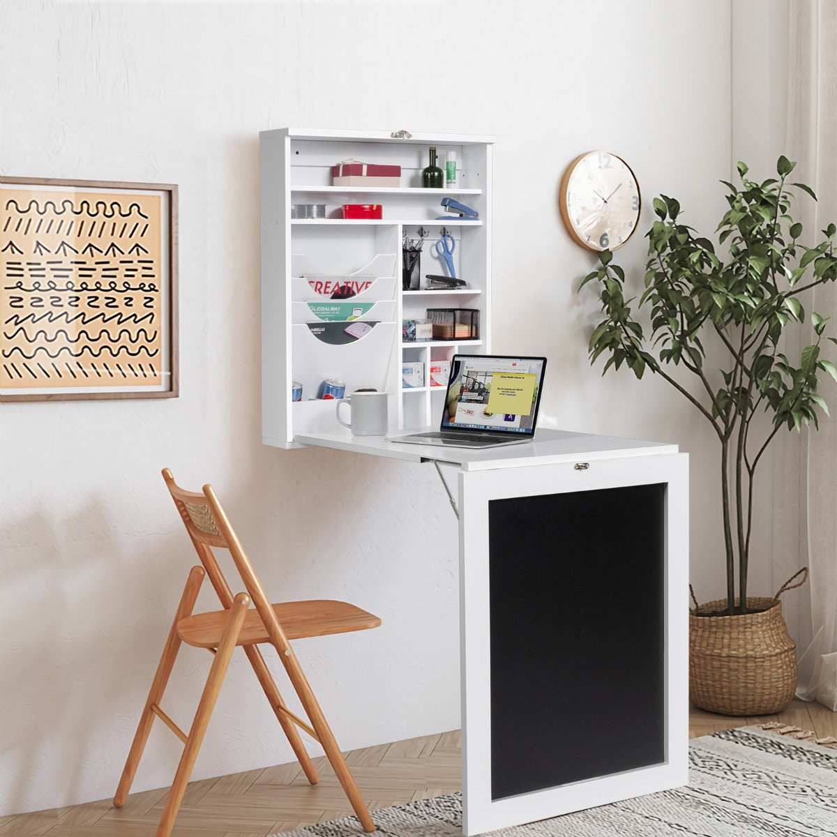 NNECW Folding Wall Mounted Desk with Chalkboard and Storage Compartments for Home/Office