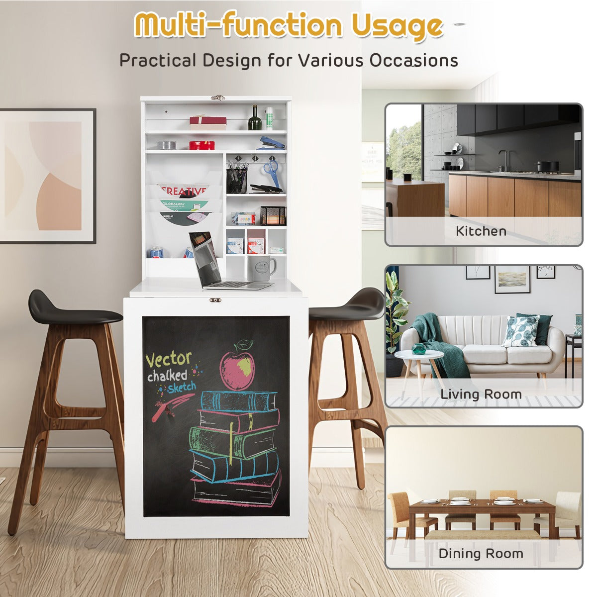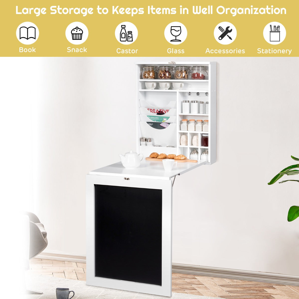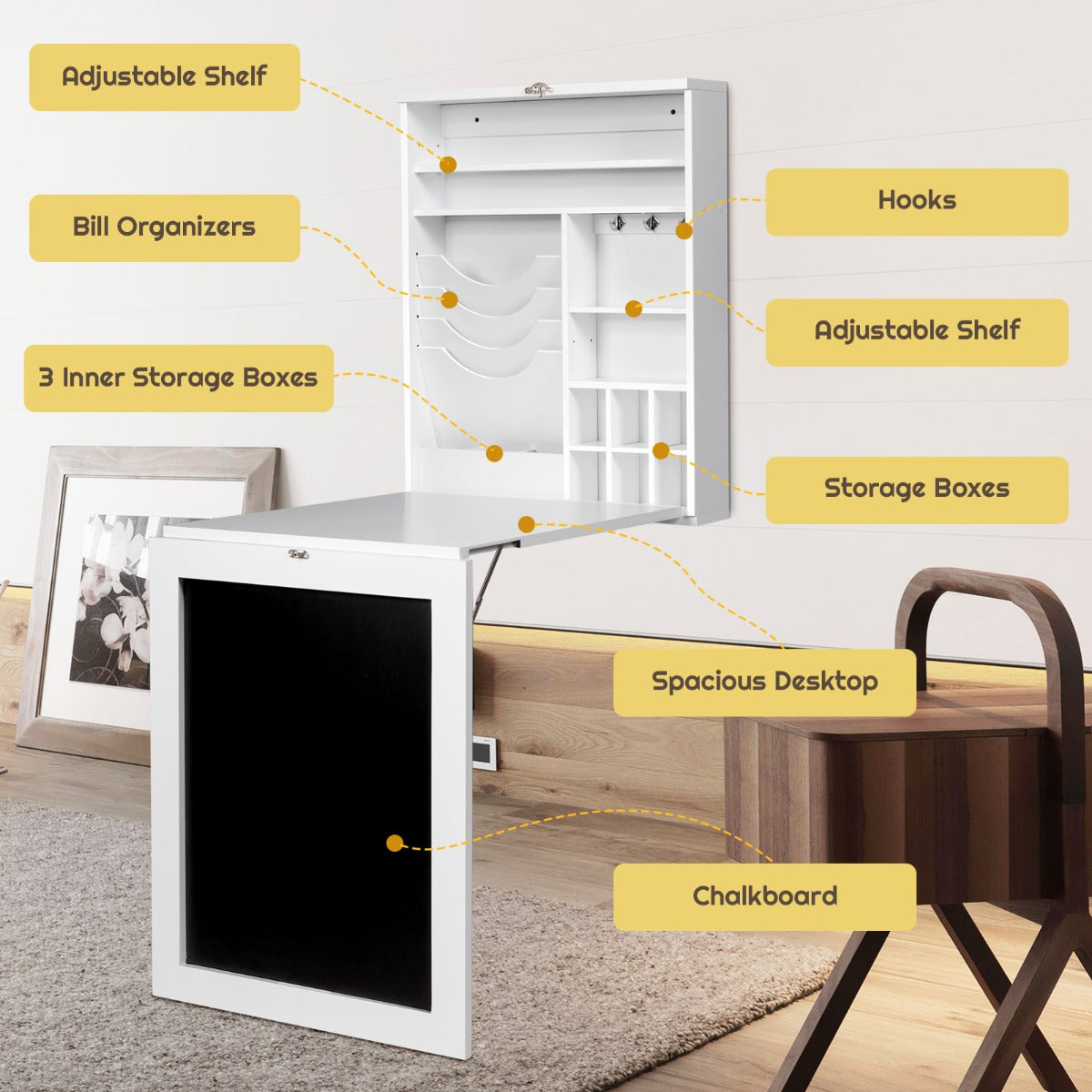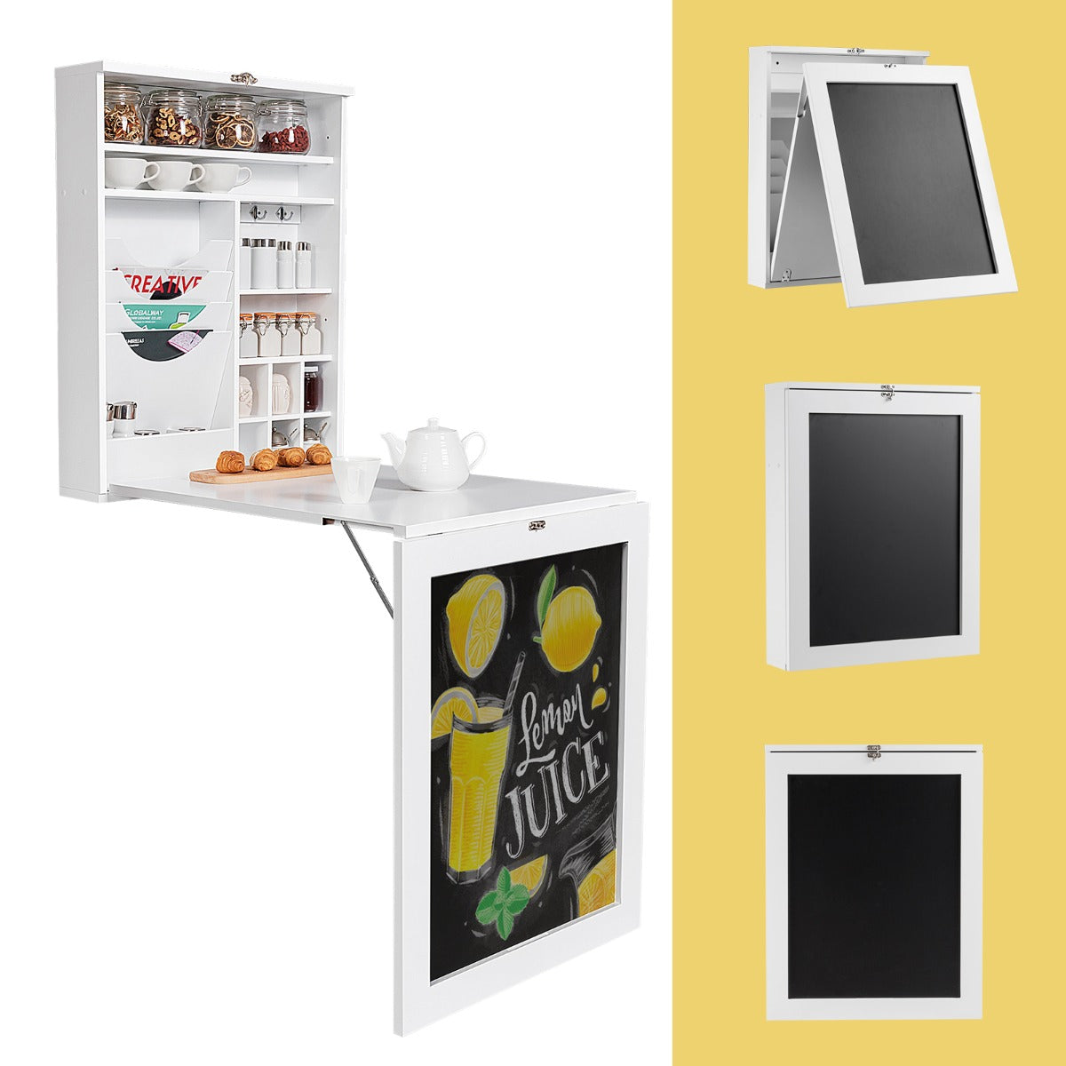 NNECW Folding Wall Mounted Desk with Chalkboard and Storage Compartments for Home/Office