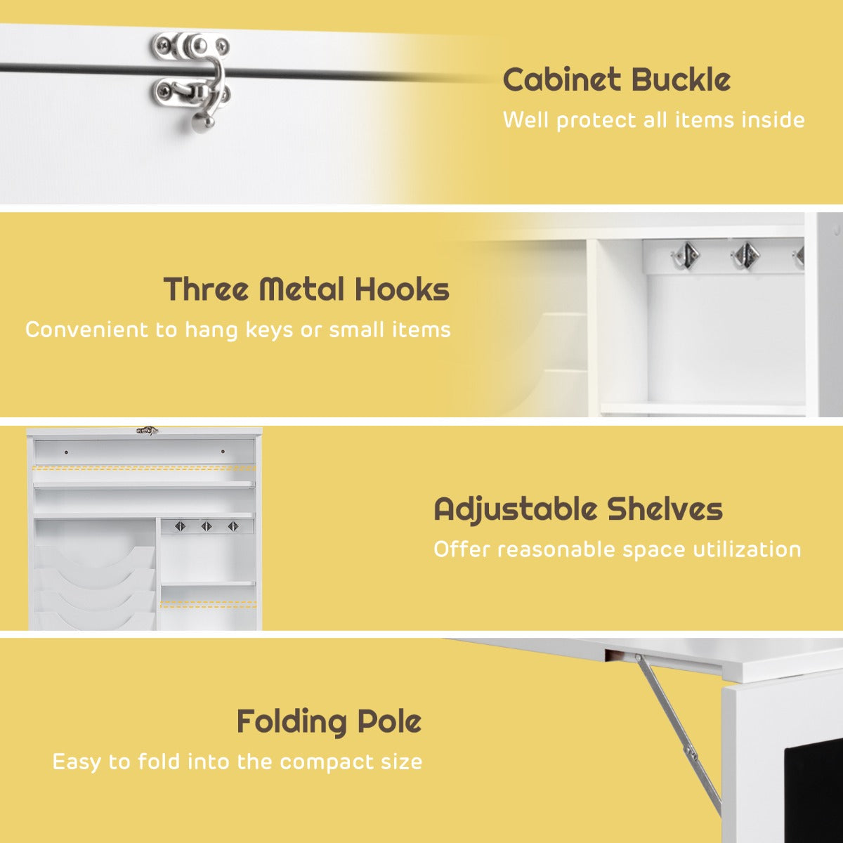 Multiple Storage Compartments: The wall mounted cabinet features multiple storage compartments, including bill organizers, adjustable shelves, hanging hooks and storage boxes. It provides sufficient working space and extra plenty of storage space for you to store and display you daily items, keeping room clean.