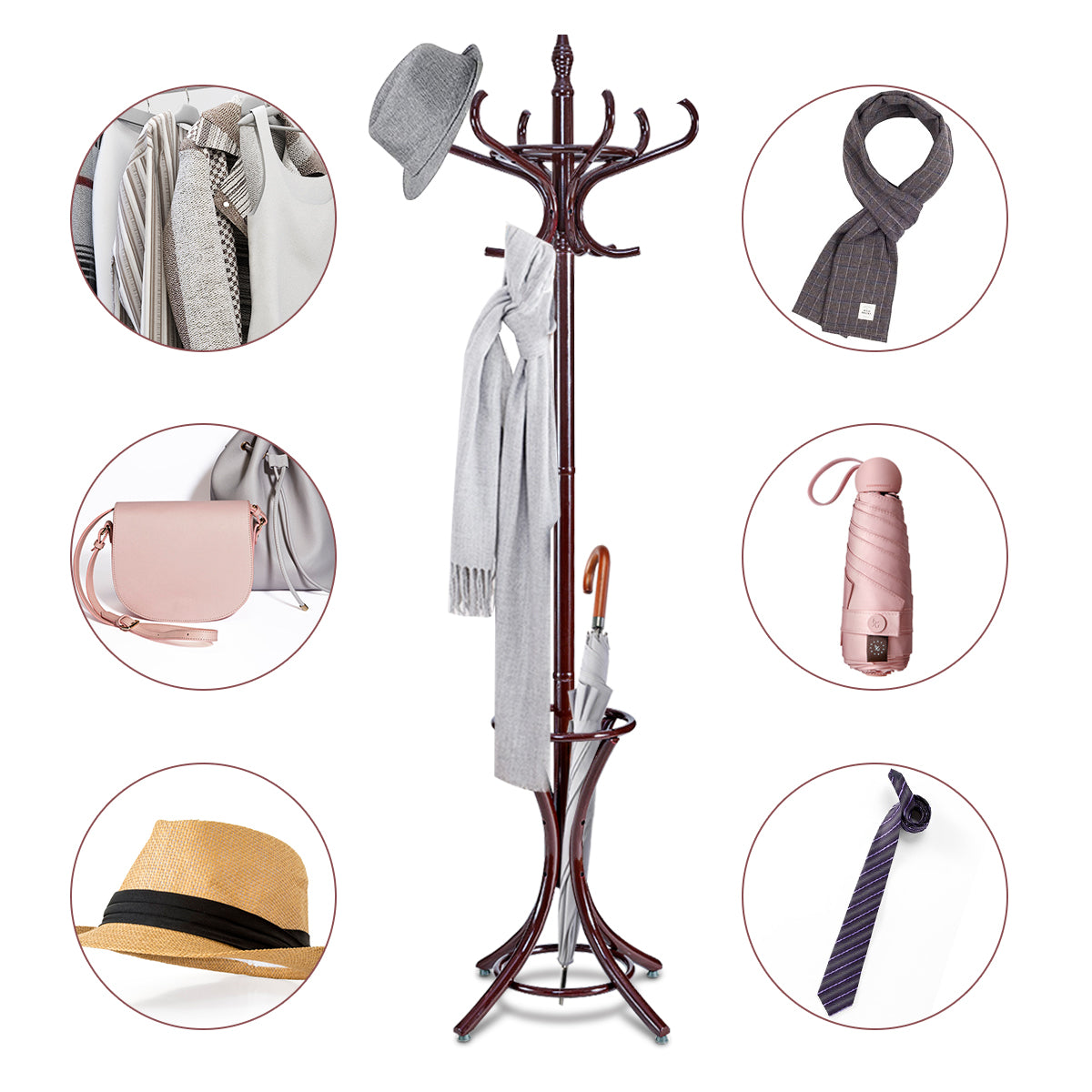 NNECW Free-standing Jacket Stand with Umbrella for Living Room-Brown